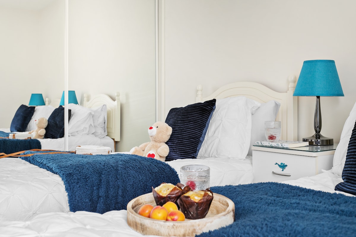 A generous twin room with zip-link beds (convertible to a super-king), ideal for families and groups. There’s ample floor space for a travel cot if needed.