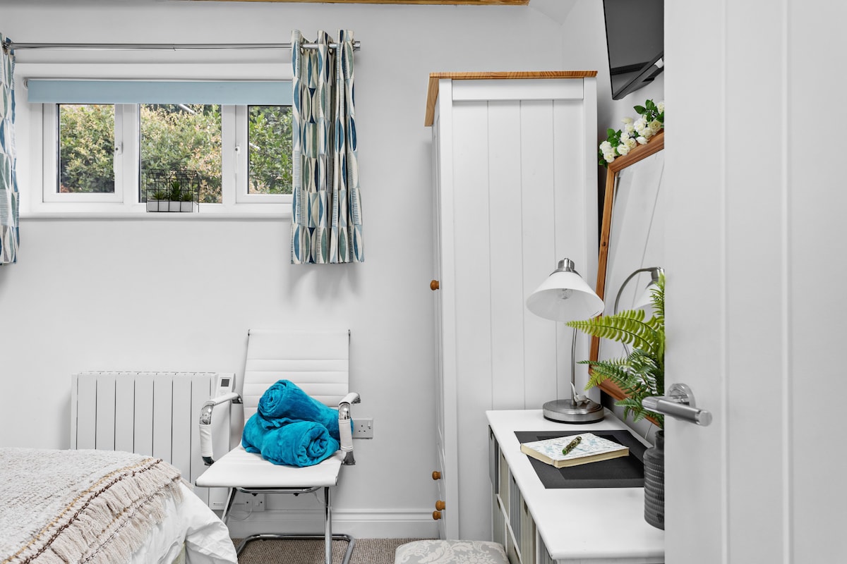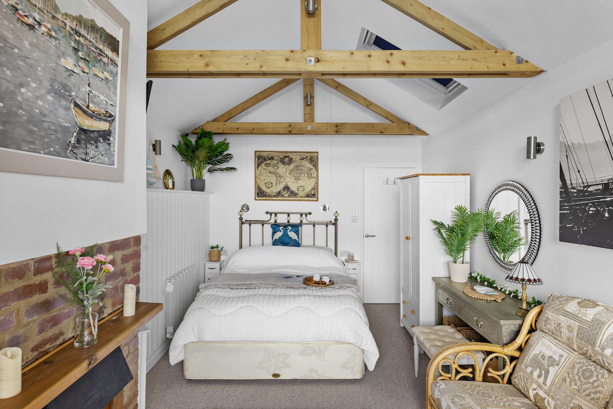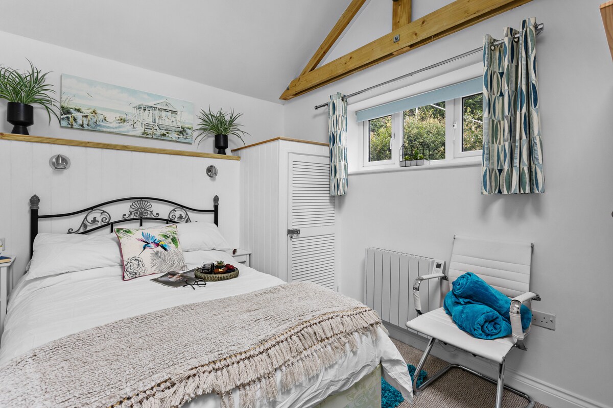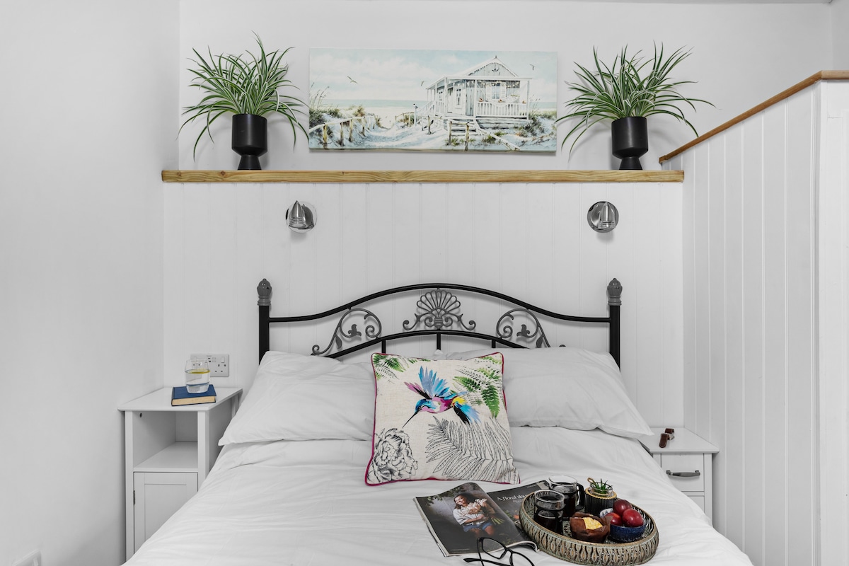 The moment you step inside The Boathouse, you’ll be captivated by the refreshing open-plan layout as the kitchen seamlessly merges with the living area, offering panoramic sea views of the marina and Torbay. As you settle into the cosy living space, let the sea air flow through, or take to the balcony to broaden the amazing vista. In the cooler months, also enjoy the warm glow of the wood-burning stove (ample wood, kindling, and firelighters are provided). Next to the kitchen area, the high dining table seats four. The feature-packed smart Tv lets you stream your favourite on-demand programmes (subscriptions required) and adjusts to the ambient light for uninterrupted viewing, come rain or shine. There’s also a Dvd player for your own choice of movies.