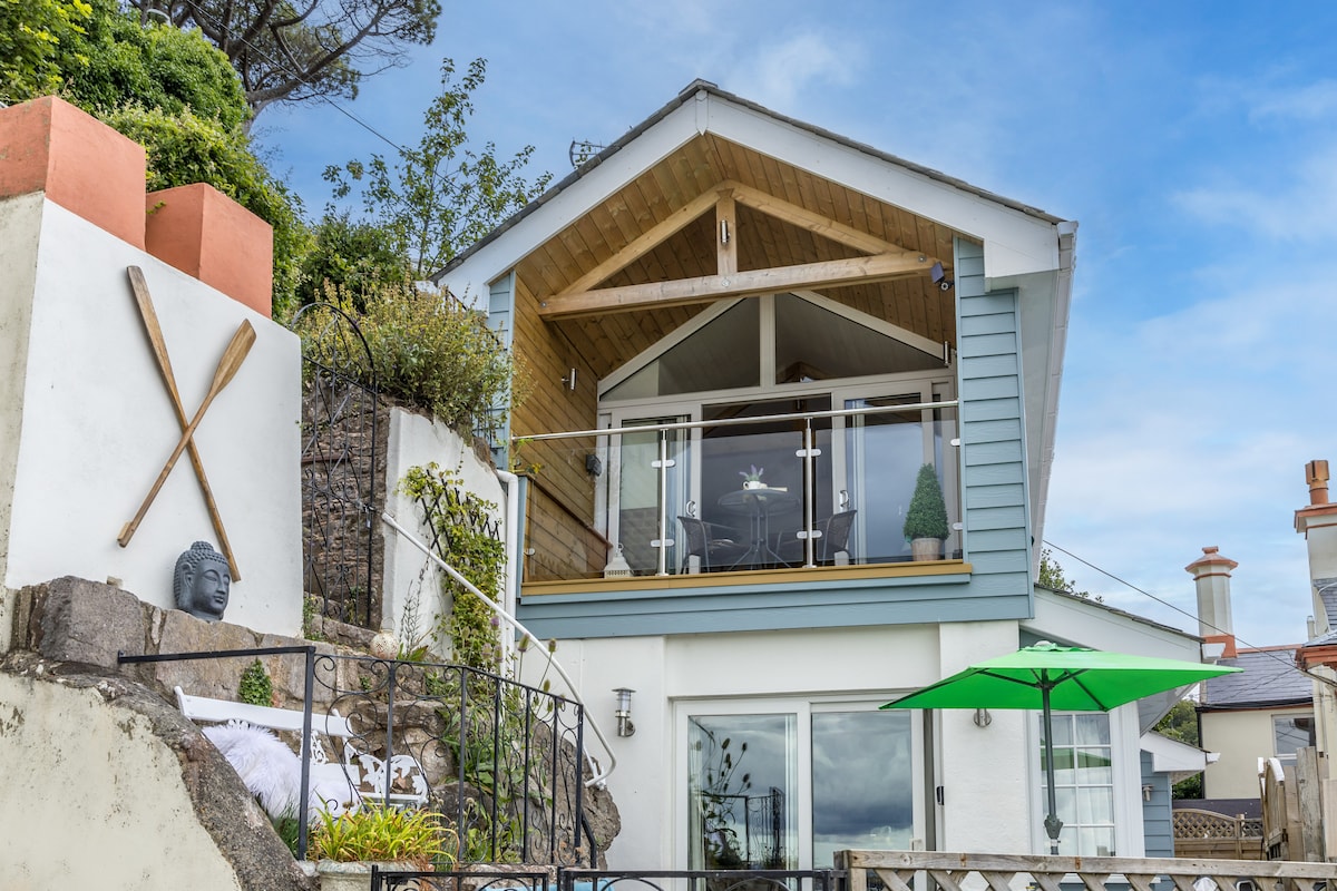 The gentle sea breeze echoes through this vibrant, charming, detached cottage. Enjoy unspoiled elevated views across Torbay - from the rock-walled patio, the living space, and the king-size bedroom with its own generously-sized, covered balcony. Styled in calm, refreshing shades, and with Smart TVs in all rooms, up to 6 can stay in the three double bedrooms. There’s parking for one car (plus a permit for the nearby car park). 1 large dog or 2 small to medium size dogs are welcome. No stag or hen parties.Please note that there are several wide and gradual steps you will encounter from the car park to the front door so this property is may not be suitable for guests with mobility issues but is easily accessible if aided.