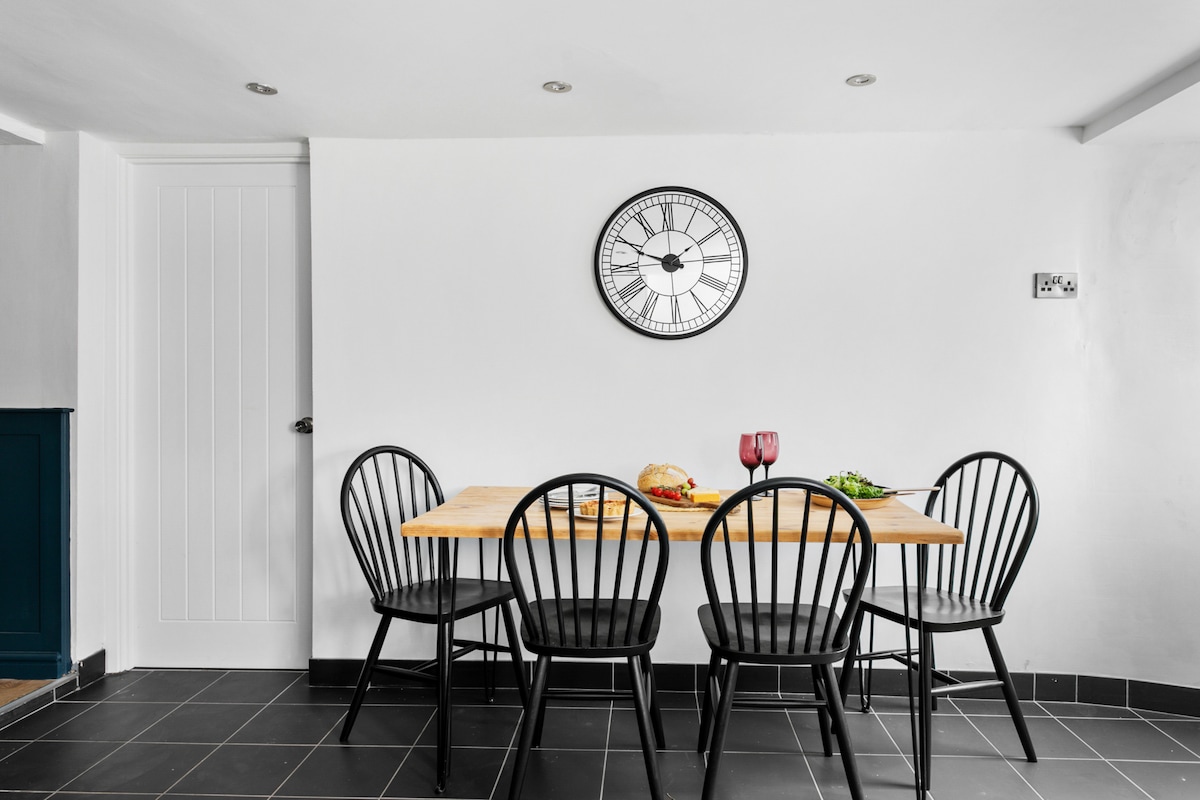 Inside, the apartment blends airy modern style with comfort and convenience. The sociable living area features a fun dry bar, Smart Tv, books, and games for all ages, while the spacious kitchen-diner boasts a double fridge, modern appliances, and plenty of room for family feasts. When the weather cools, it becomes a cosy sanctuary for slow evenings and unwinding together.