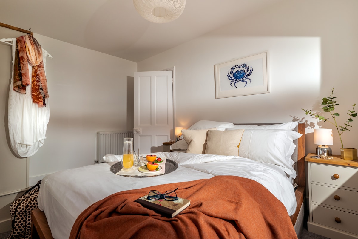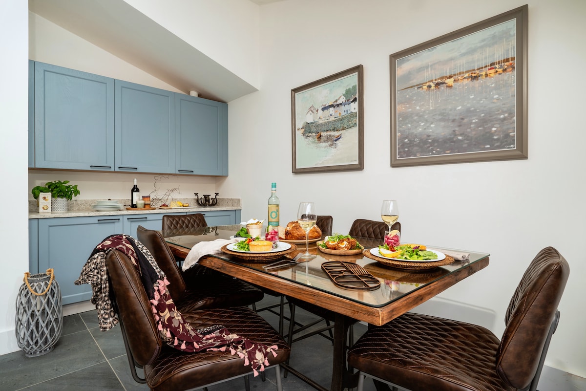 As evening arrives, light the woodburner and settle in. Littlefields features two beautifully furnished lounges, offering plenty of space for families to spread out. The main lounge seats four comfortably and is perfect for movie nights by the fire, while the second lounge provides a peaceful hideaway for reading, games or quiet relaxation.
