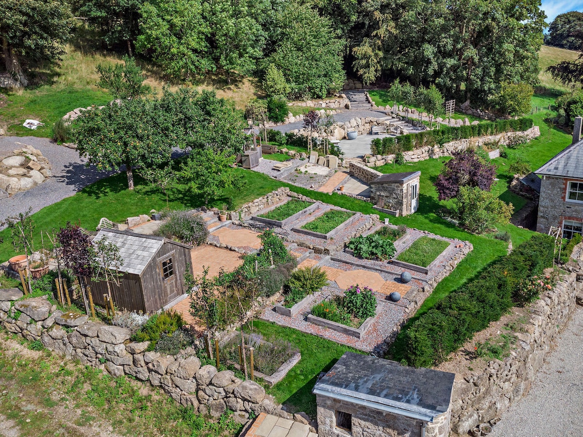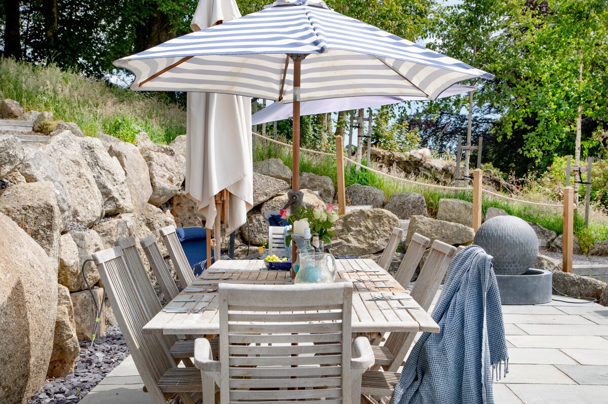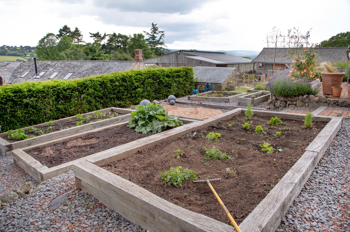 To complete the picture is a further communal garden shared with Philips Barn, a one bedroom property that can be booked with Linscott Farmhouse. A network of paths and tracks leads past the productive kitchen garden with raised oak beds offering herbs and vegetables that you can help yourself to, brick paving and a further terrace to enjoy. The pathway then leads up to a swimming pond flanked with granite boulders and with glorious views over the house, gardens and rolling hills of Dartmoor beyond.
