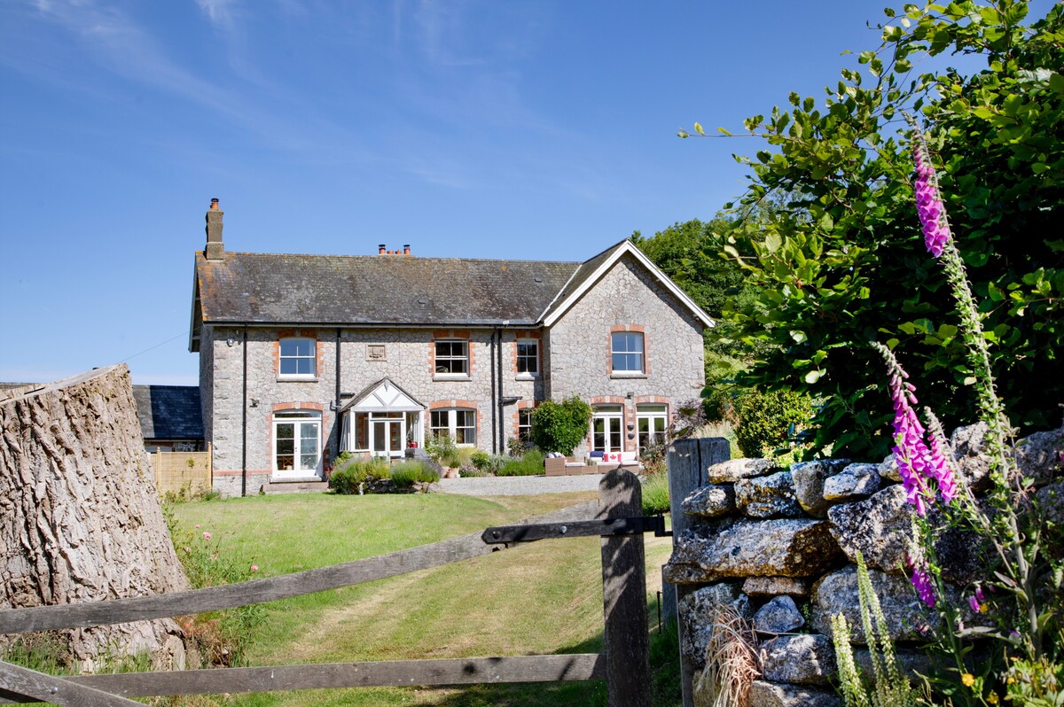 Linscott Farmhouse is a beautifully refurbished farmhouse on the edge of Dartmoor National Park, set on 77 acres of private countryside. This accommodation in Moretonhampstead, Devon is perfect for those seeking a tranquil, high-quality escape, this spacious home combines elegant interiors with breathtaking outdoor spaces and views of the surrounding countryside. It is the perfect destination for families, friends, and larger groups seeking relaxation and adventure.Inside