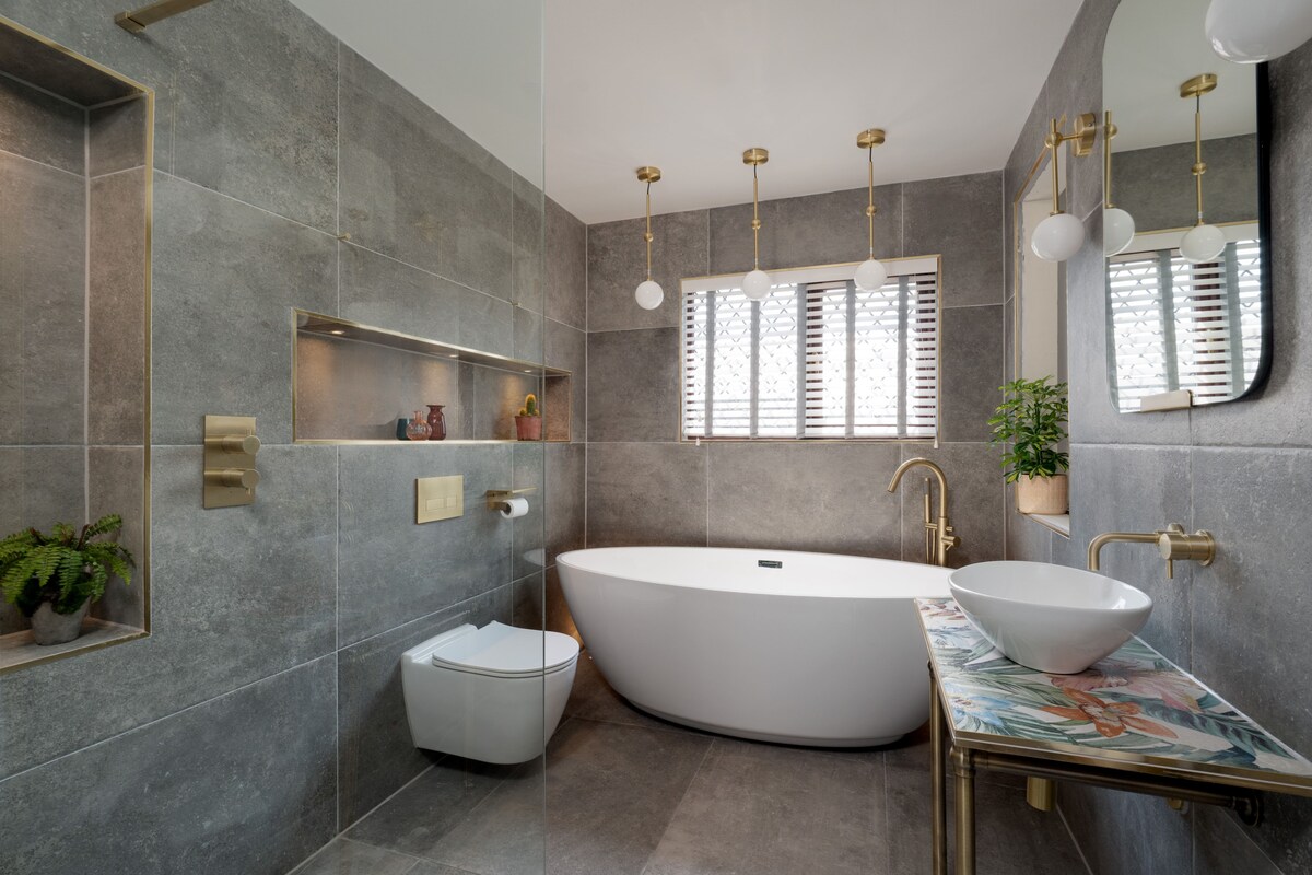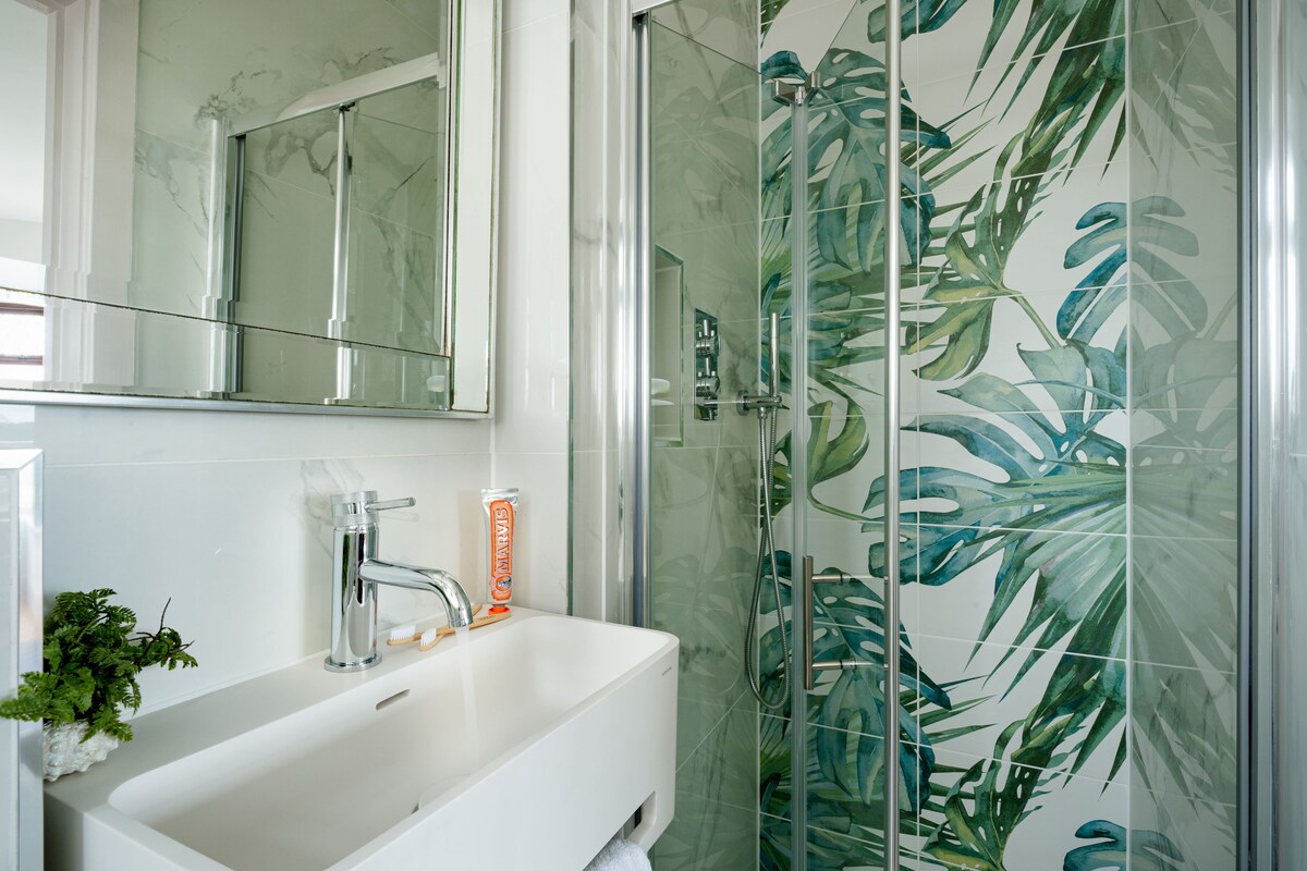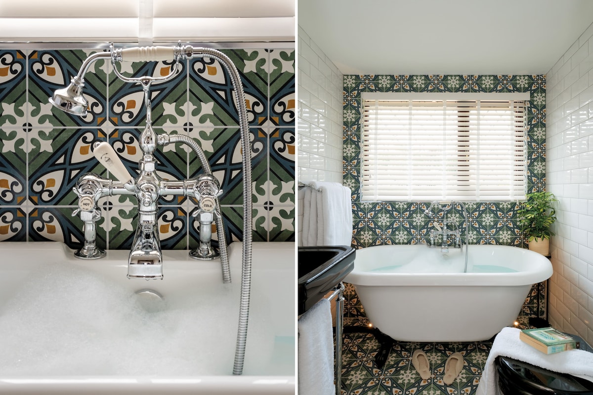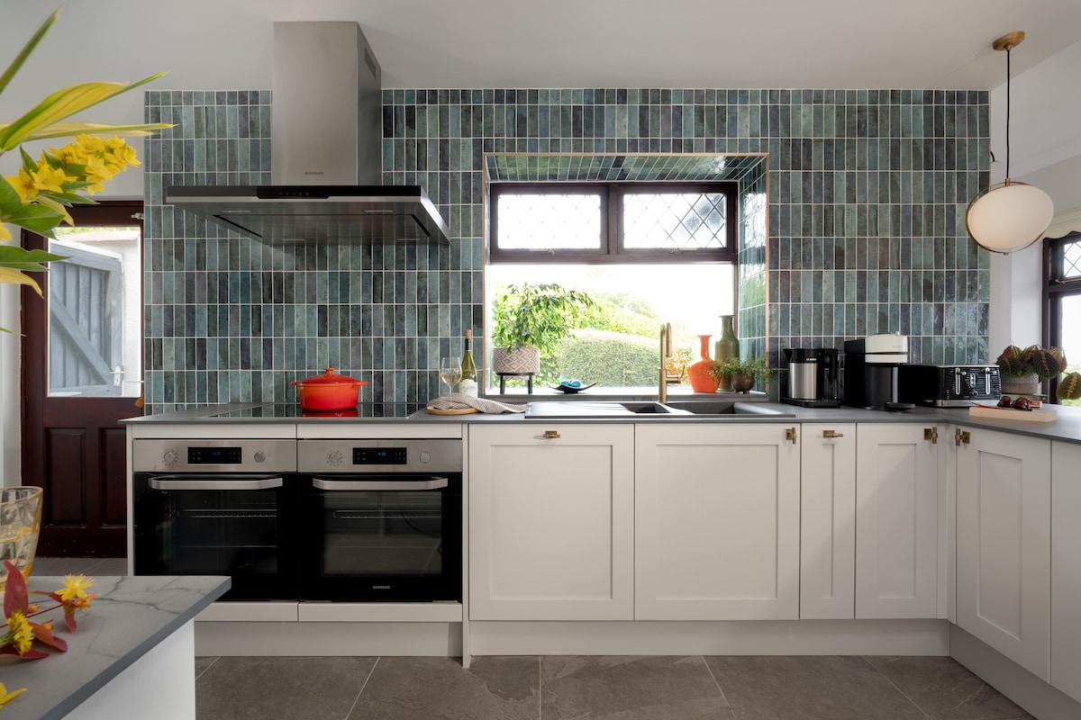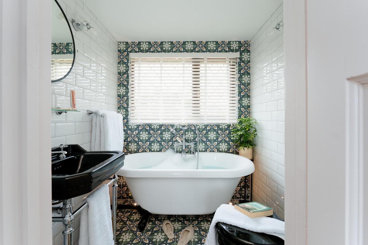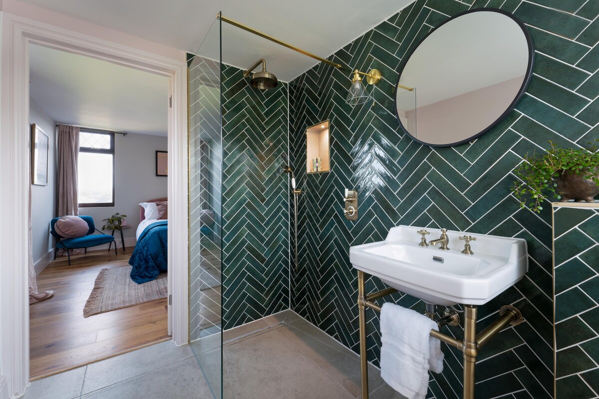 The ground floor has one double bedroom with sliding-door access to the decked terrace, and a snug room-come-bedroom with a king-size sofa bed. Open the windows and let the lovely sea breeze float in as you rest on cool cotton sheets. Both bedrooms share a contemporary ensuite shower room. Upstairs, you’ll find the views just get better. The inviting super-king master bedroom is light, airy, and has a generous and contemporary ensuite shower room, with an oval bath just asking to be filled with bubbles. There’s a cosy bedroom with two single beds (not zip and link); and a lovely double bedroom with a large en suite shower. Down the hallway is an elegant, tiled monochrome family bathroom, complete with a freestanding bath.