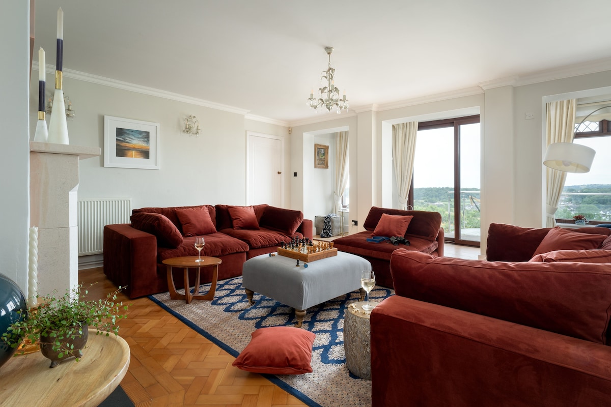 Every window has its own spectacular view, and the interior design makes the most of every nook and cranny. There are bags of space for everyone to relax or get together for some fun and games. The open-plan modern kitchen is fully equipped to accommodate any request, and the dining area is perfect for sitting to talk about the day, making plans for the next or creating cocktails with your friends. Cosy up on the sumptuous red velvet sofas in front of the fire in the cooler months or throw open the doors onto the terrace when it’s warmer. Tucked away by the French doors is a chess set on one side and a reading nook on the other, should you fancy space to chill out.