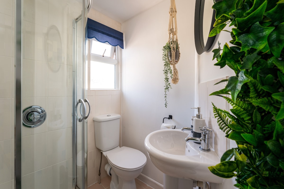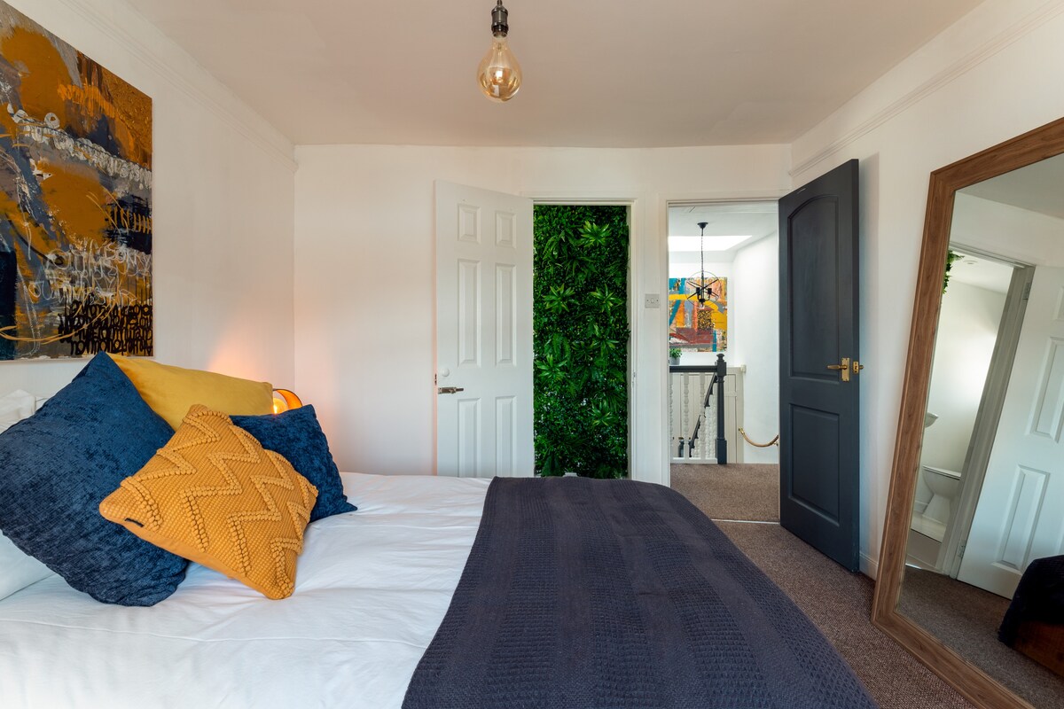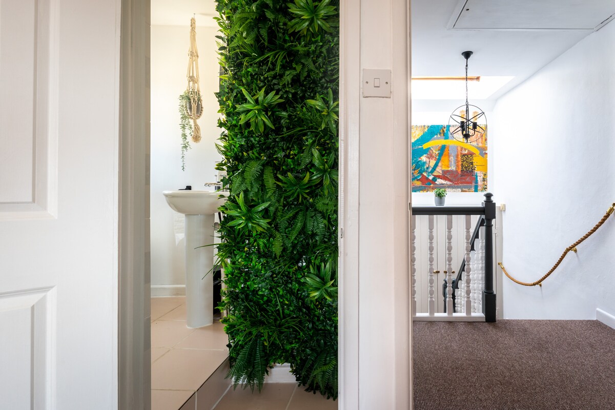 Upstairs, three beautifully designed bedrooms await. A spacious super-king room with sea views promises dreamy beach-filled slumbers, while a stylish king and a cosy double with a unique vertical-garden ensuite offer restful retreats. A large family bathroom with bath and shower completes the space—perfect after a day in the surf.