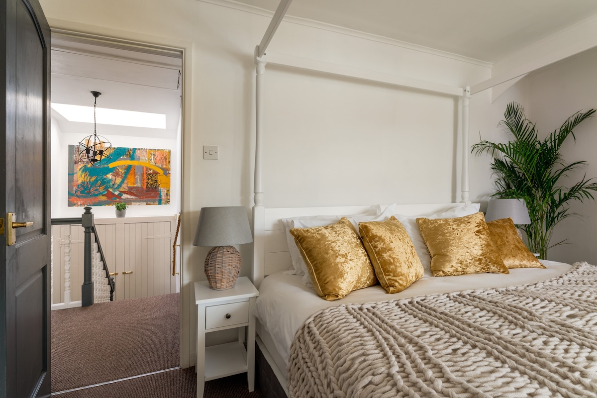 A striking landmark on Teignmouth’s lively Back Beach, the Crab Shack Apartment offers an unforgettable blend of luxury living, coastal style and award-winning seafood on your doorstep. With its bold exterior and beautifully curated interiors, this contemporary duplex sleeps six and provides the perfect beachside escape for families, foodies, walkers and watersport lovers.Step inside and you’ll find a calming palette of ocean blues, warm golds and soft neutrals designed to help you unwind the moment you arrive. The spacious first-floor living area is made for slow, cosy days—featuring two comfortable sofas, a hanging bubble chair, a woodburner and an honesty bar. Open the doors to your private balcony and soak up uninterrupted views of the water, boats and pastel sunsets.