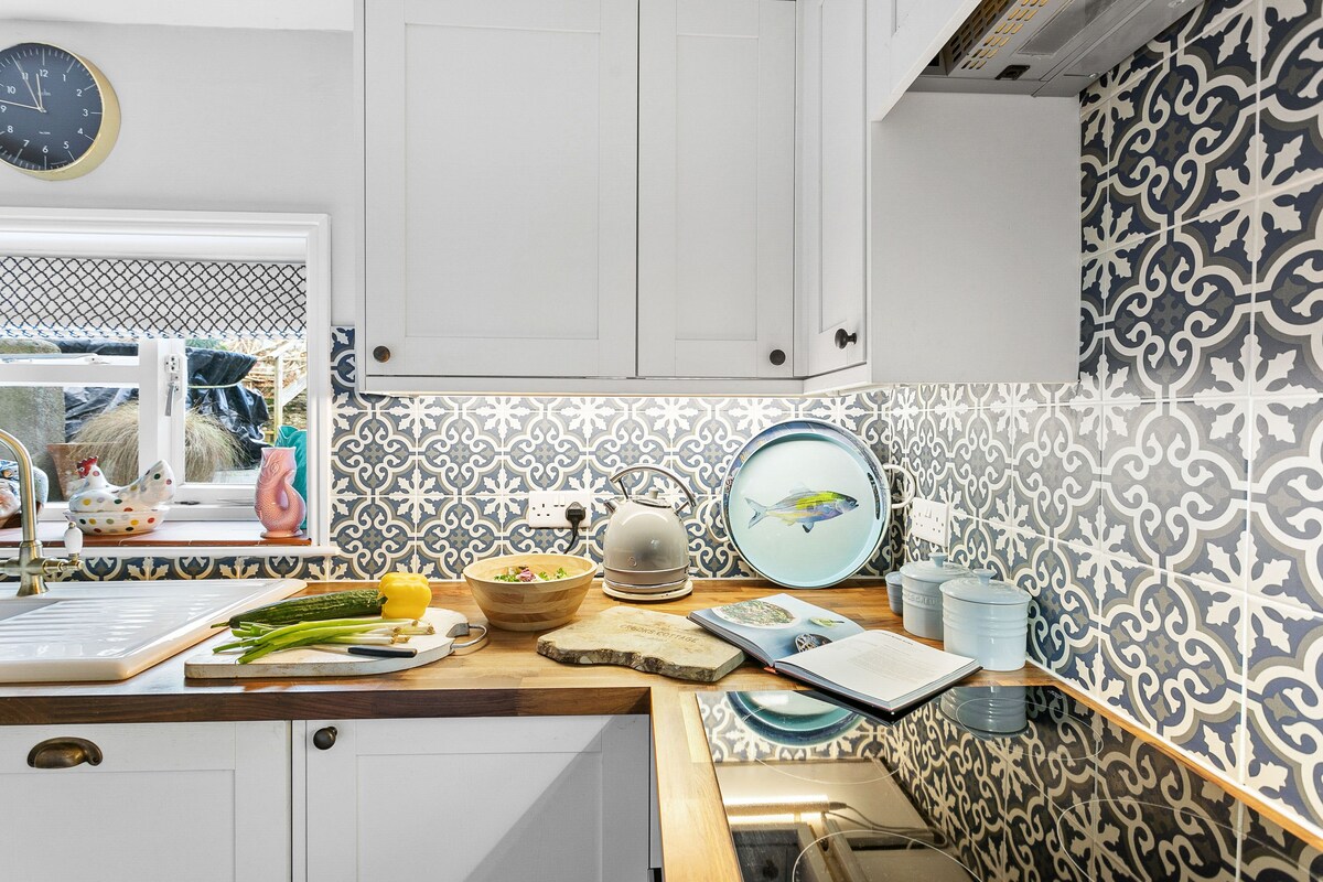 From the entrance foyer with space for coats and boots, there's the stylish open-plan living space - a blend of modern-meets-retro with traditional cottage features. Two comfortable, contrasting sofas centre around the large log burner with its original stone hearth - perfect for snuggling up on those chillier winter evenings whilst watching a film on the wall mounted TV.
