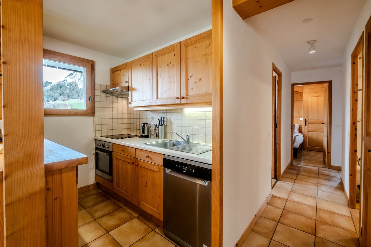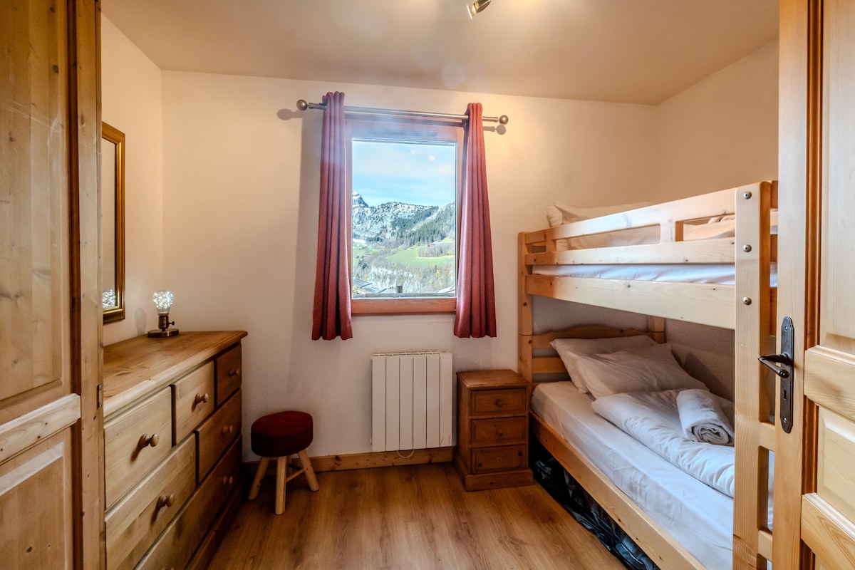 We had a great time in this apartment in a great location, less than 100 meters from the ski slopes. The view is beautiful, not overlooked, and the place is quiet. The proximity to the slopes allowed us to relay to babysit at noon and ski for half a day. The apartment is well appointed for 6 people: we never felt cramped. It is also very well equipped with a dishwasher, washing machine, raclette, large fridge. The large private cellar is a real plus for storing skis, boots and sleds. Indoor and outdoor parking is convenient. Only small downside: a little dust in the corners, and the samples provided (soap, dishwashing liquid, toilet paper) are too limited for the stay. On the resort side, there was still good snow in Chinaillon, while in the Grand-Bornand it was already spring. We highly recommend this rental and will be back with pleasure!