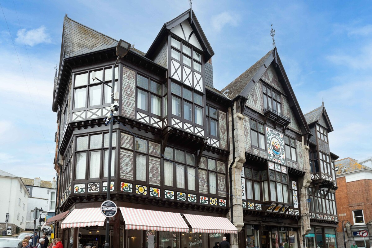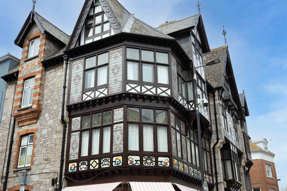 smack bang in the middle of Dartmouth in a character building. Superb dining/kitchen space and decent sized bedrooms. Shower/bathroom great. I would definitely stay again. Easy comms from the owners. Thanks