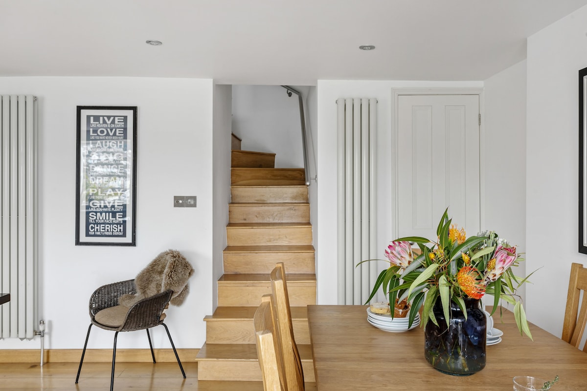 Enter from the road to the second-floor hallway, on this floor are the first two bedrooms and family bathroom. The first bedroom has a kingsize bed along with built in storage, bedroom chair and river views. The second bedroom has a kingsize bed again with built in storage, wall mounted TV and ensuite bathroom with shower, toilet and washbasin. The family bathroom is brand new with rolltop bath, large shower with rainfall head, toilet and wash basin.The master bedroom has a kingsize bed and an ensuite cloakroom.
