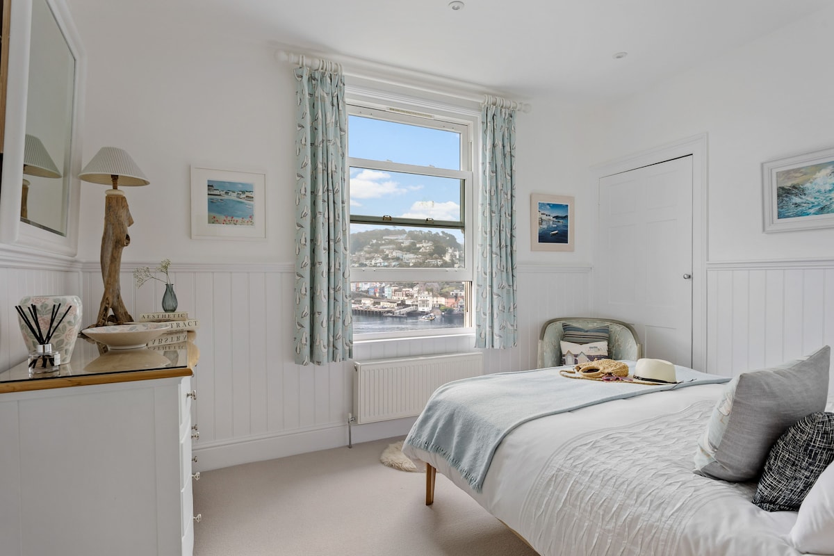 We loved everything about the house and its spectacular views from every single room. We were a party of 6 - twin 4 year olds plus their parents and grandparents of the twins. Luckily we’re all pretty fit but the steps are very many and very steep! We all left fitter than when we arrived! Would not suit anyone infirm or very young children! Instructions were very clear but the road is exceptionally narrow as stated and we only drove up once to unload. Dartmouth is a headache for parking so we were very appreciative of the permit. Outside terraces were beautiful and we were so lucky with the weather that we did sit outside.