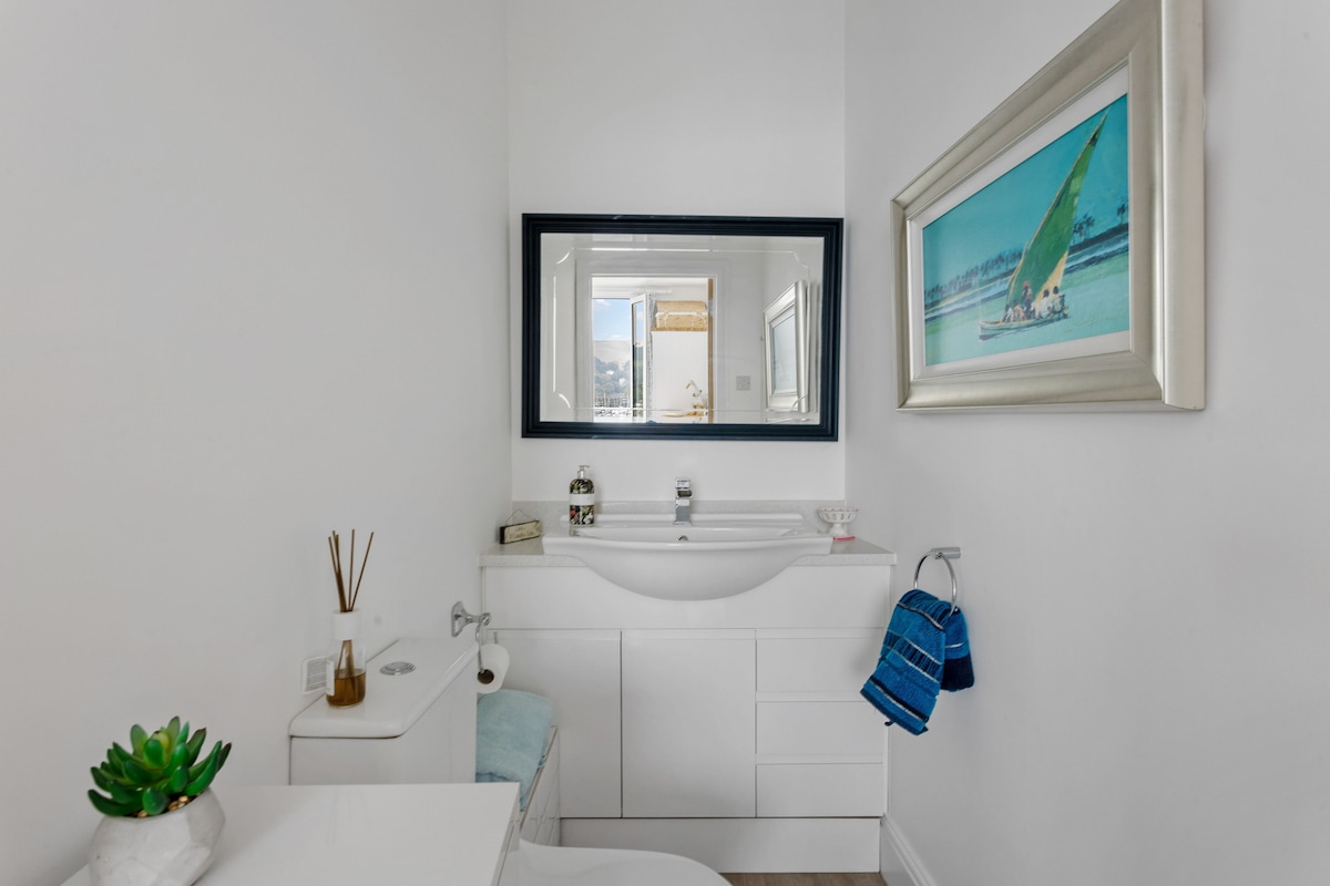 From the kitchen there is a large decked area with outdoor dining furniture separated by a glass balustrade, the perfect spot to take in the view with a morning coffee. Down to a lower gravel area and smaller decked area. There are stairs down the side of the building that take you back up to the road.