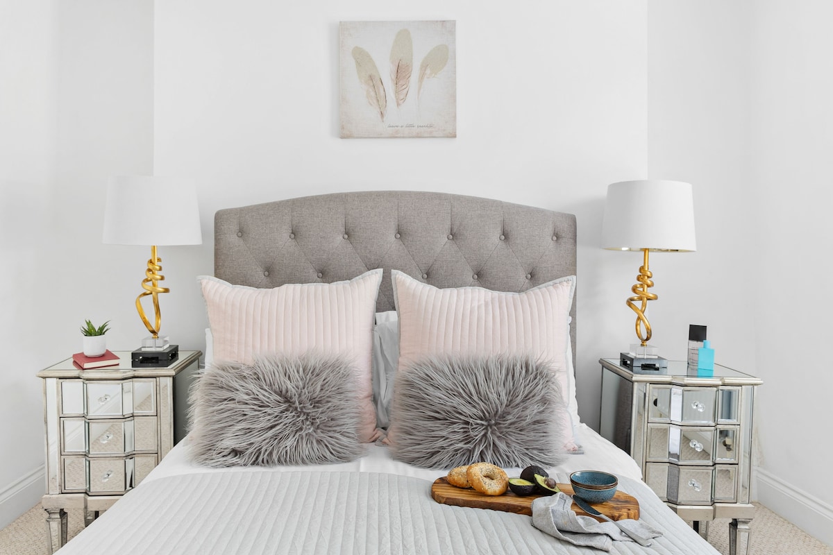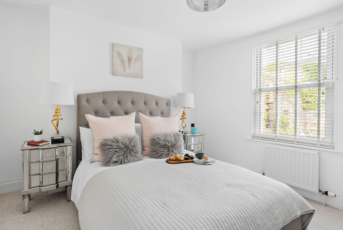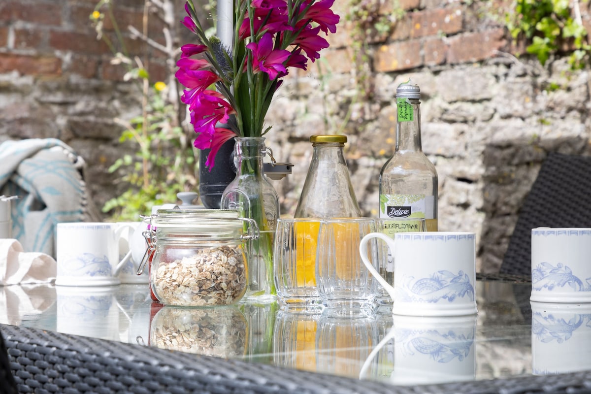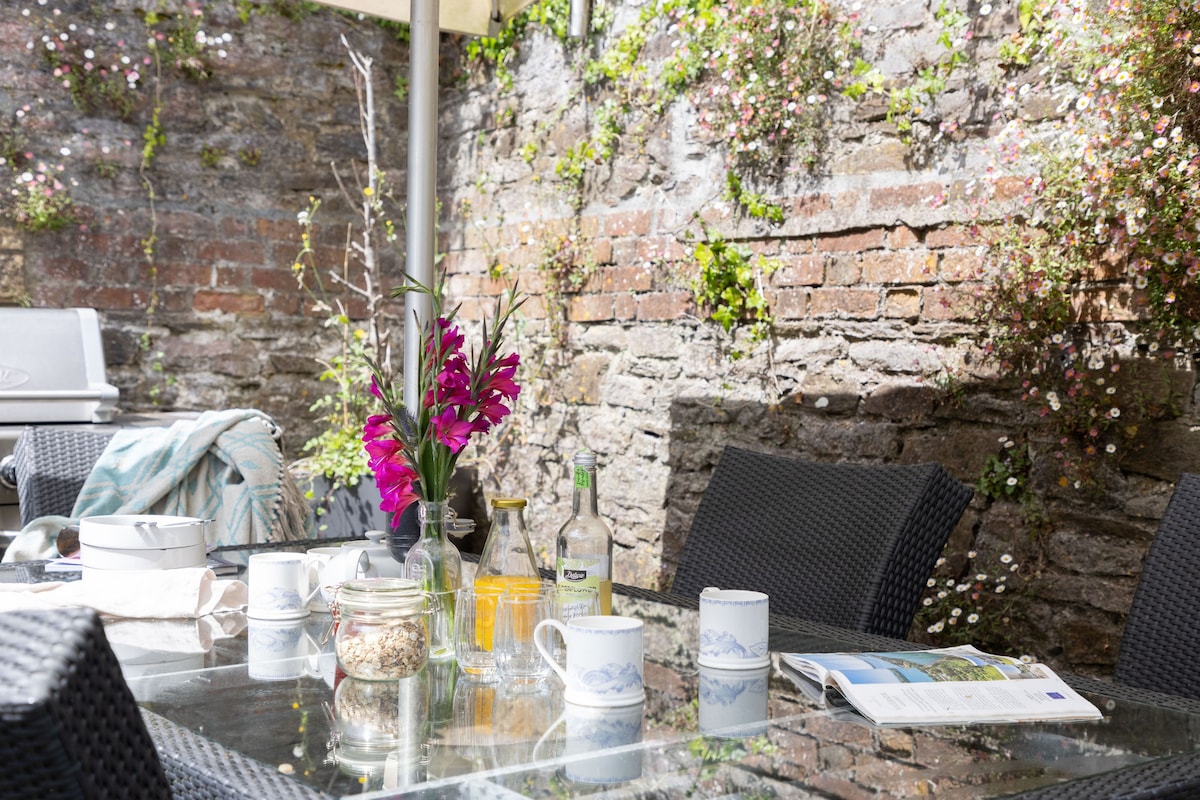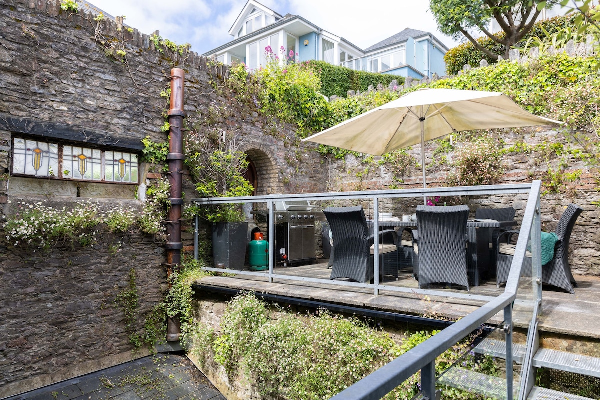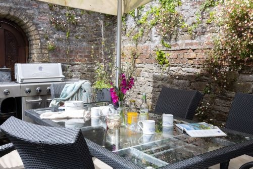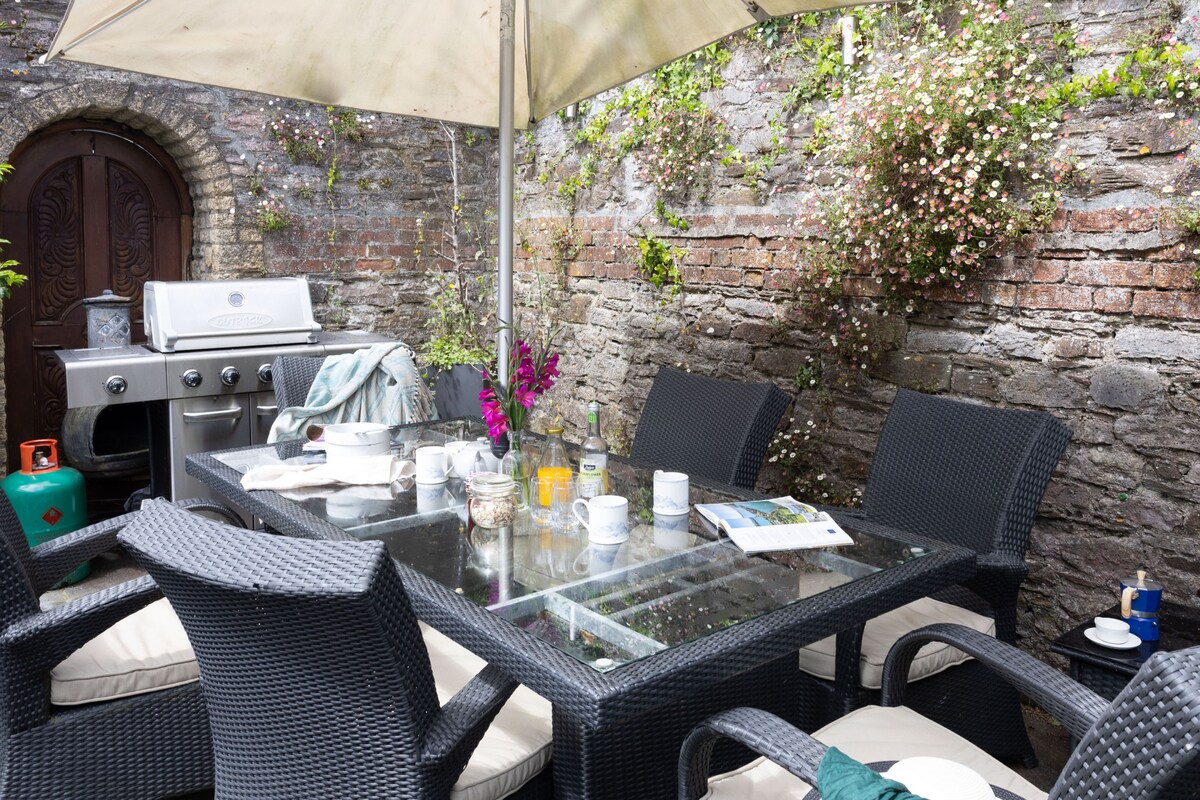 On the half landing between the first and second floors is the door leading to the walled terrace garden, a brilliant sun trap with a rattan dining table and chairs and Outback gas barbecue. The perfect spot for a glass of fizz on a summers evening. Please note the patio is not best suited for exercising dogs, Corronation Park is a 2 minute walk away at the end of Clarence Street where dogs can be exercised.