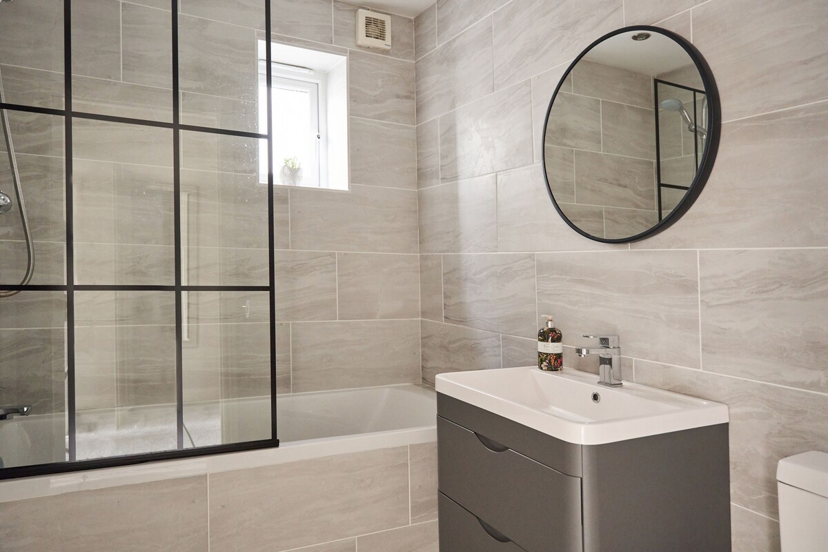 Down the hall, there's a cosy single bedroom where, again, large windows fill the room with light and offer river views. At the end of the hallway, there's another kingsize bedroom with ample storage, as well as a side door to access the patio garden on this level. The family bathroom is also on this floor and has a shower, toilet and basin.