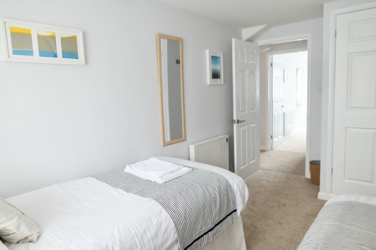 The second bedroom has twin beds and a fitted wardrobe.