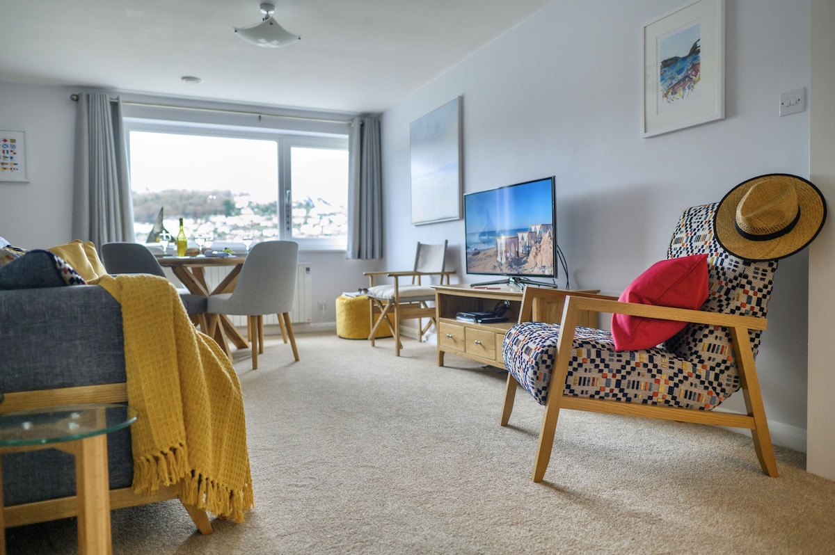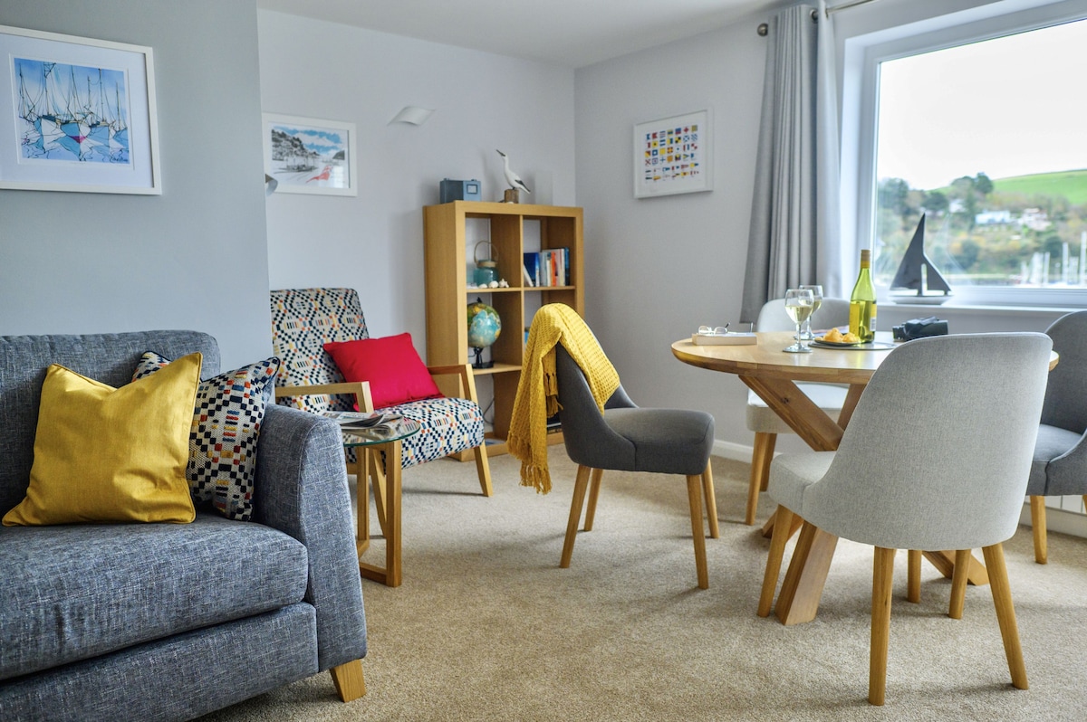8 Mayflower Court is a light and airy second-floor apartment located on Dartmouth's North Embankment. With two bedrooms, stunning river views and onsite parking, it’s the perfect spot for a couples retreat or a small family holiday. This riverside apartment has been finished to a high standard and is only a moments' walk from Dartmouth's enviable selection of shops, cafés, and inns, as well as the many river rides and ferries to fully explore the villages and ports of this exquisite valley.
