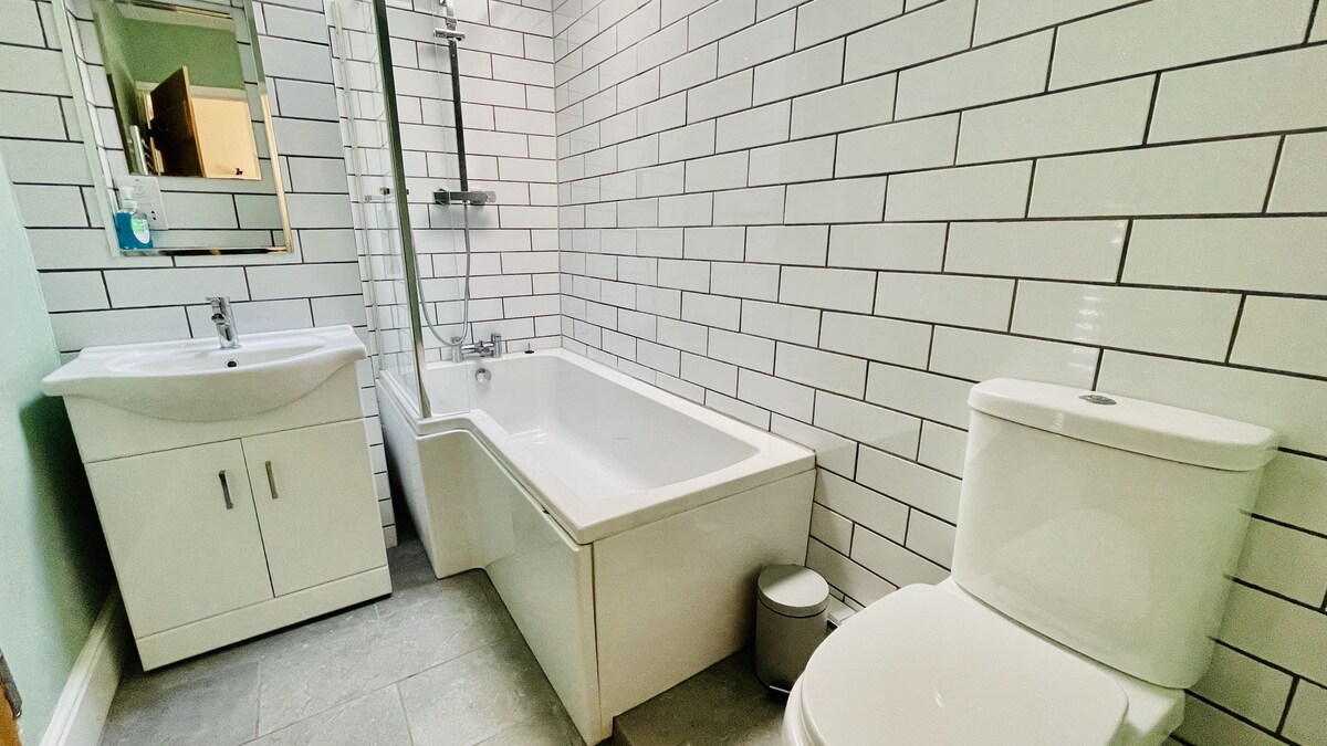 The family bathroom has been newly refurnished for 2020 and has a bath with overhead shower, toilet and wash basin.