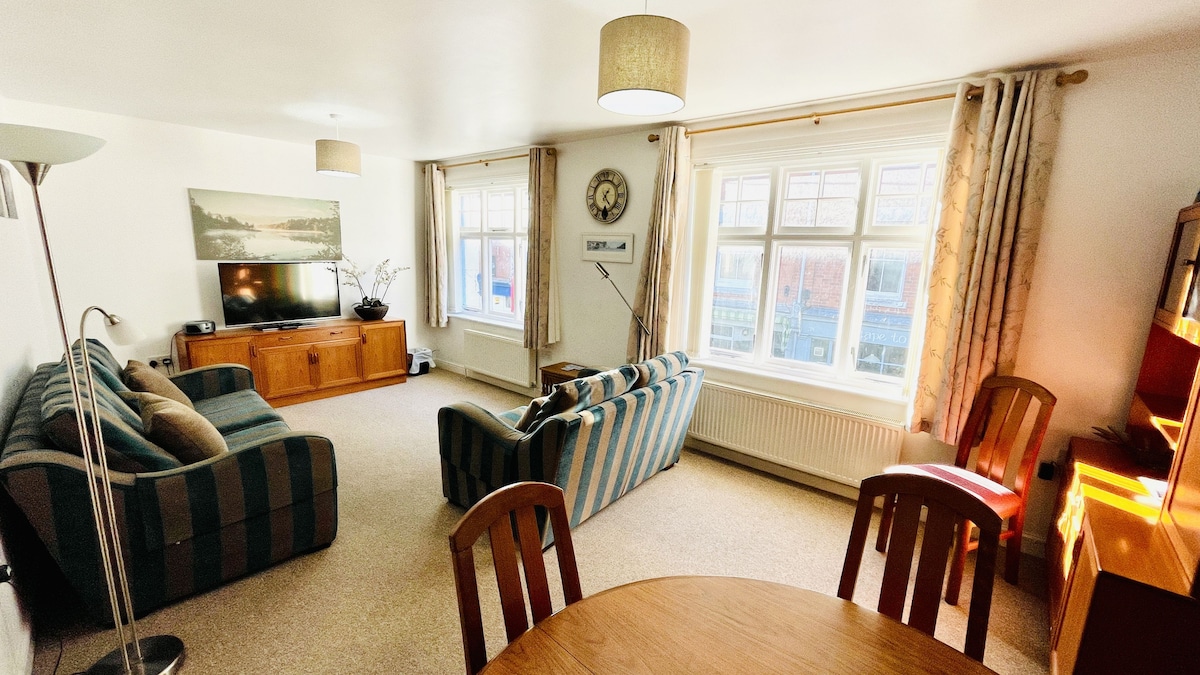 Bayards is a fantastic base for a self-catering holiday in the centre of historic Dartmouth - either a short break or longer. This well-appointed first-floor apartment is perfect for two couples sharing or a small family - with two bedrooms, two bathrooms, and a good-sized living space. Pets are welcome, too. You’re just a short stroll from the riverside, eclectic shops, chic restaurants, and cosy inns. River rides and ferries take you to the Dart Valley’s picturesque villages and coves beyond.Accommodation: