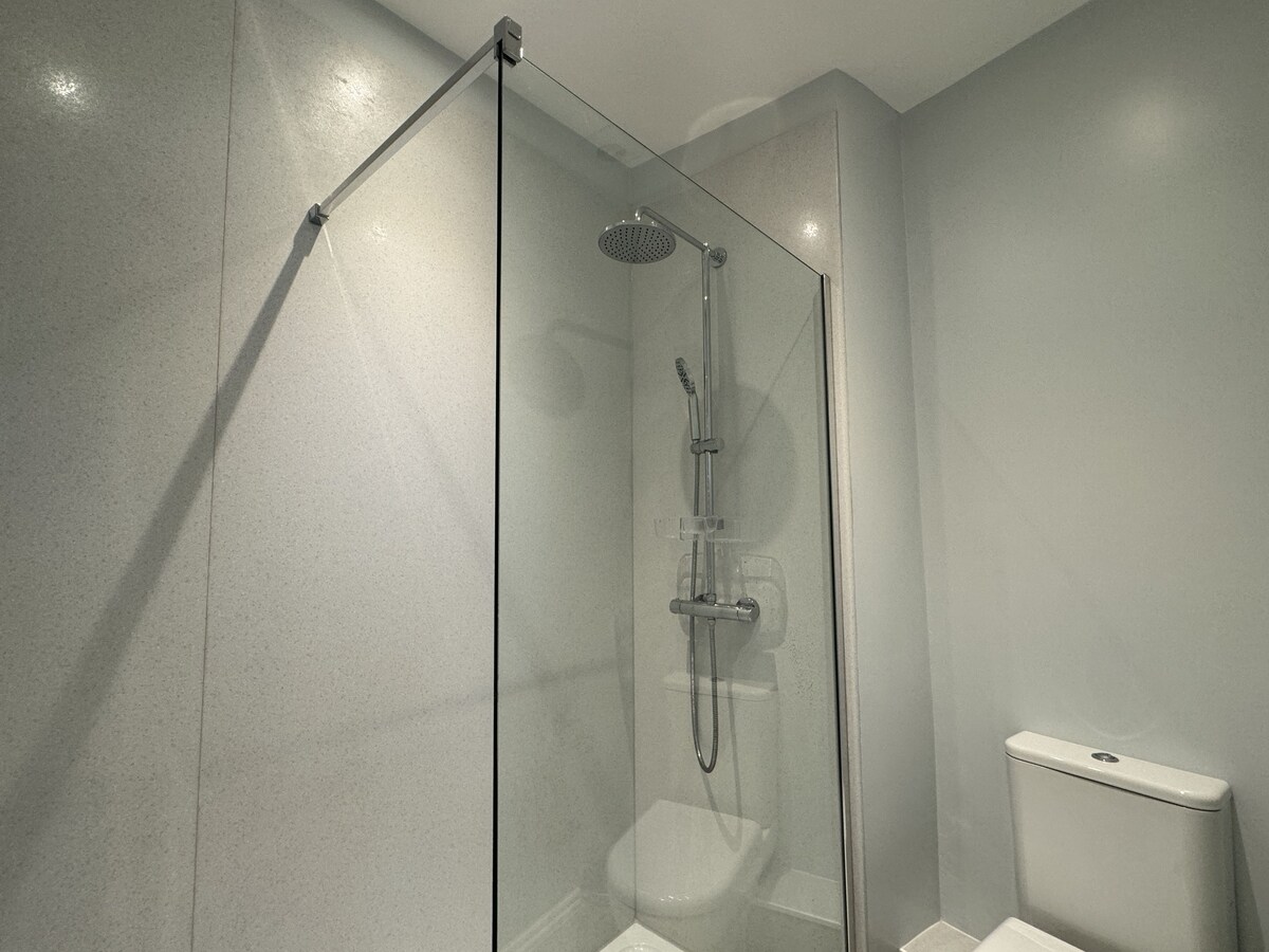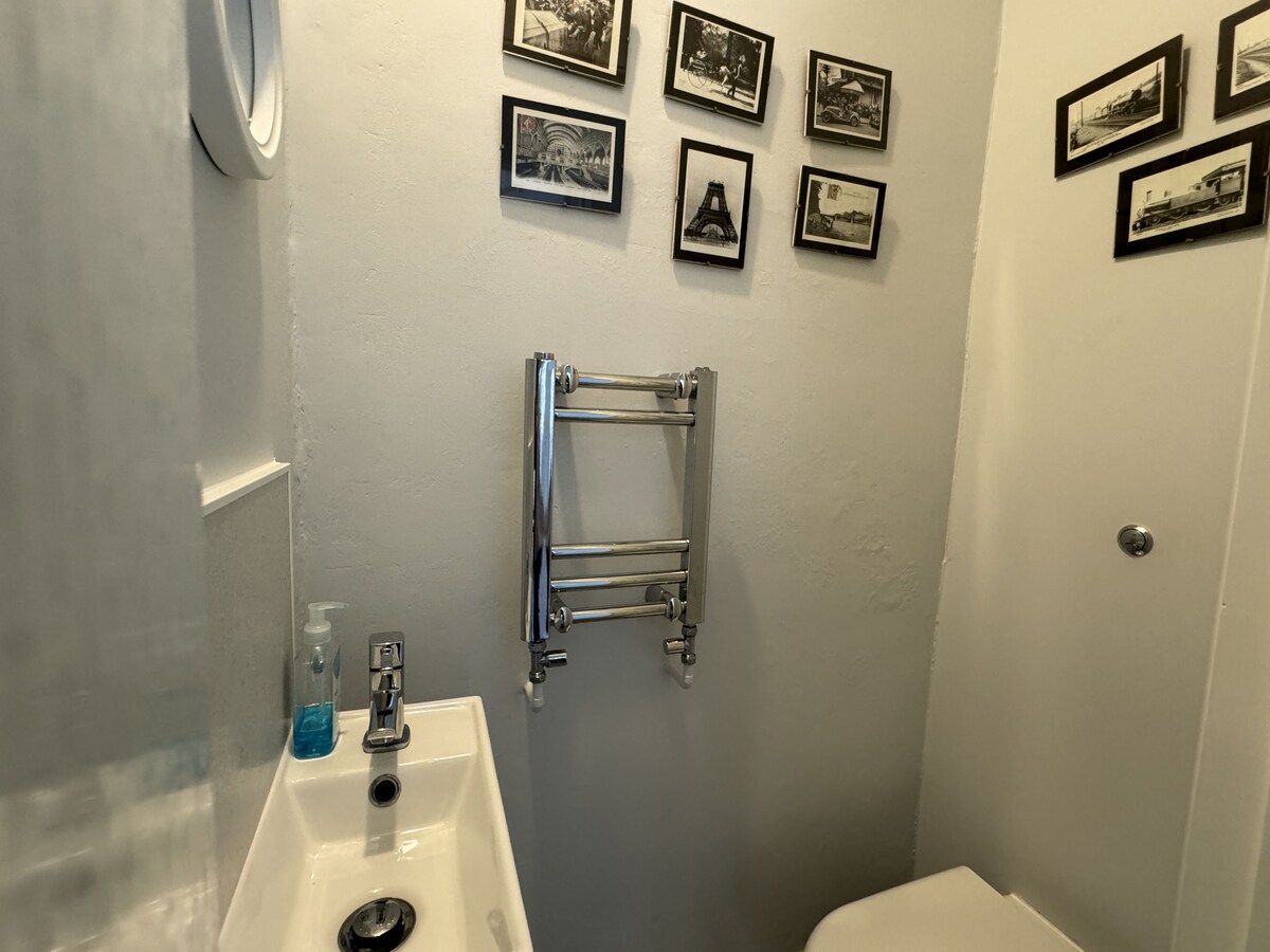 The main bathroom has a large walk in shower, toilet and wash basin. There is an additional cloakroom cleverly snuck in with toilet and wash basin providing extra facilities for 2 couples sharing.