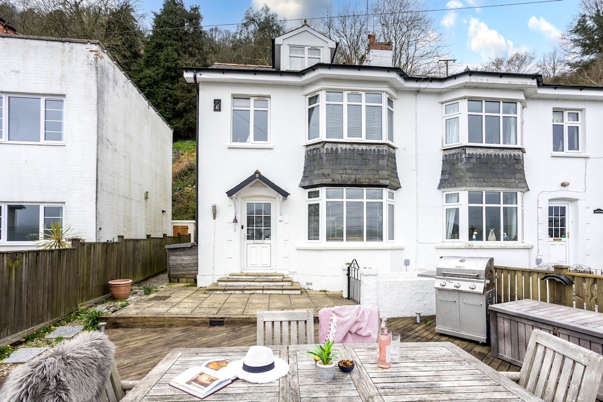 We had a lovely stay at Uphigh, and I have only one issue, which was that we were a regatta team and needed a quick turn around in the house - being able to use only one shower at a time due to the combi system, despite there being two bathrooms, was a bit inconvenient. Everything else was great and a truly stunning view from the garden patio - sitting and watching the river laid out in front was very relaxing!