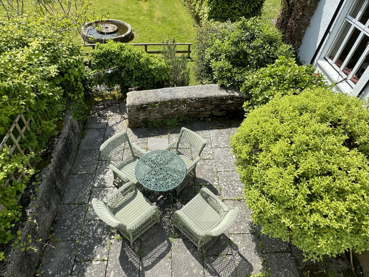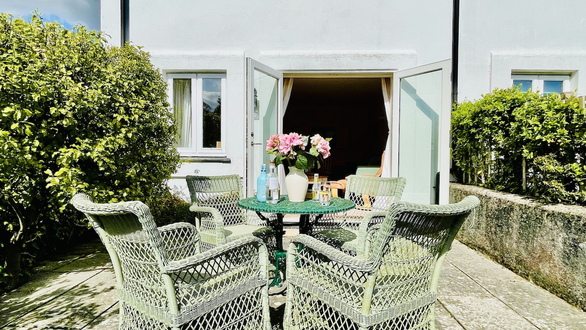The cottage benefits from a small enclosed patio immediately off the living room, complete with garden furniture. Perfect for sitting in the sun and enjoying the peace and quiet Dittisham provides. Steps down from the patio is access to the orchard and the wider communal grounds including large grassy areas with vantage points over Bow Creek and over towards The Quay. Guests are welcome to exercise dogs on the grounds however we ask they are kept on leads.