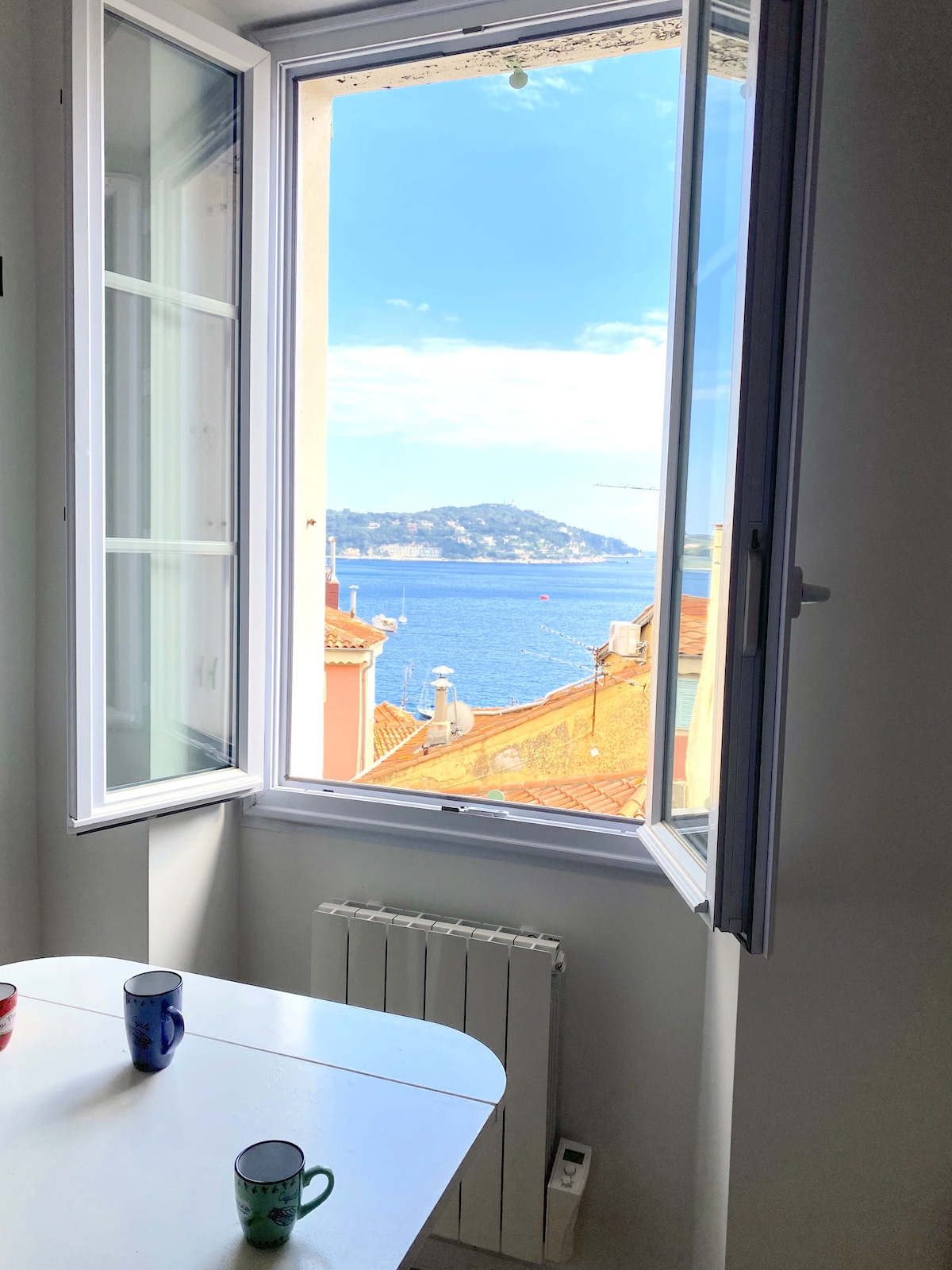 Window overlooking the roofs and offering a beautiful sea view. All household linen (sheets-towels) and toiletries are provided, as well as vacuum cleaner, hair dryer and iron.