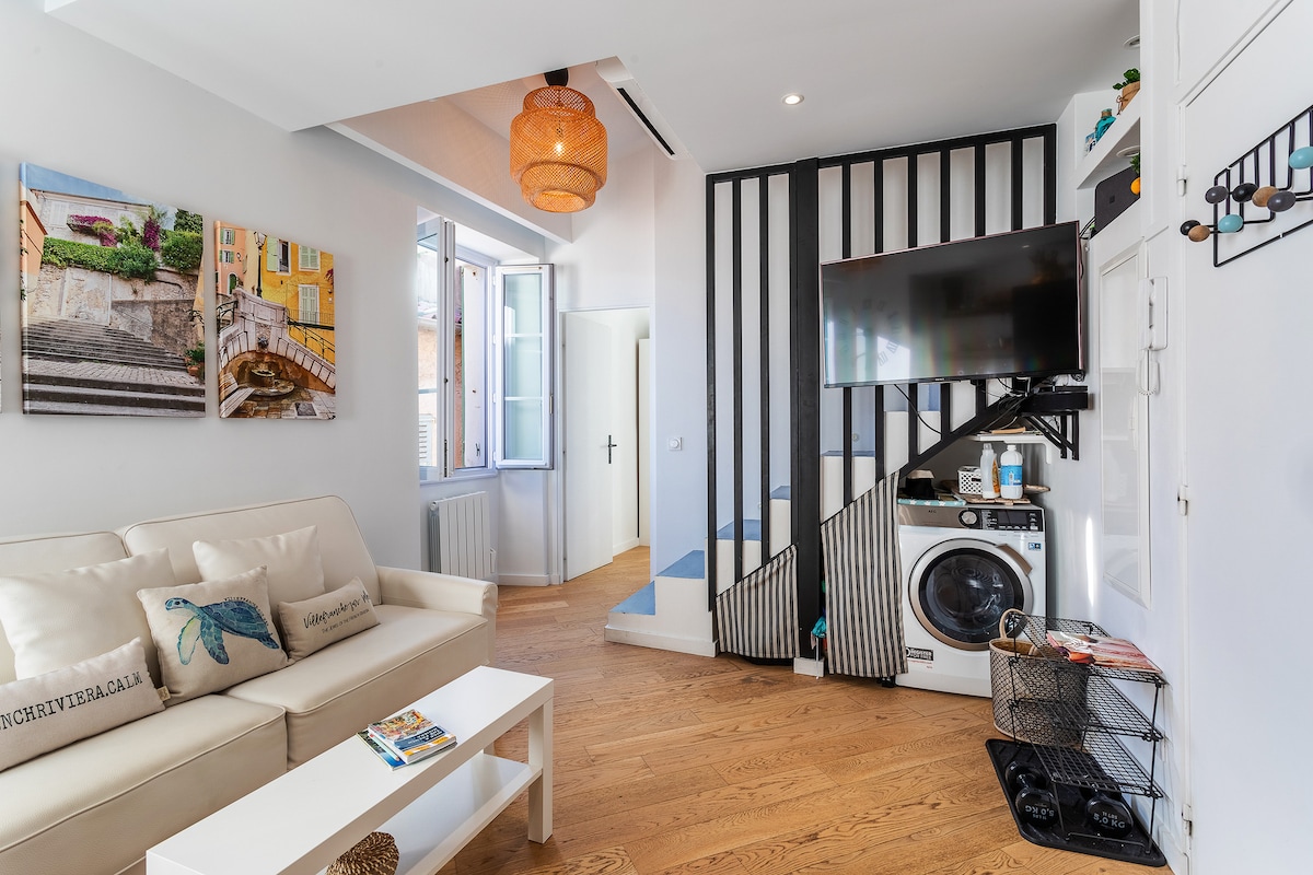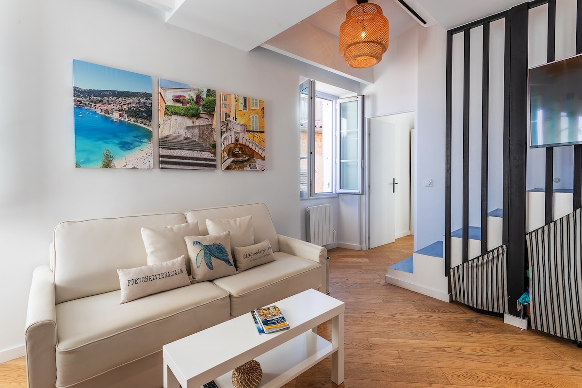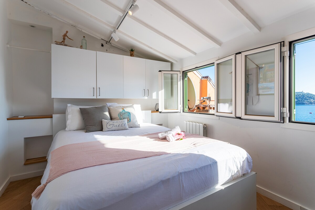 Pearl Ap4444 By Riviera Holiday Homes is a charming duplex located on the top floor of a small residential building in the old town of Villefranche sur mer.Fully renovated, equipped and air-conditioned, it offers a magnificent sea view. It is composed as follows: The living room is equipped with a quality sofa bed, a coffee table, a bar and its 4 stools, a table, a low cabinet with Tv and a WiFi internet connection.