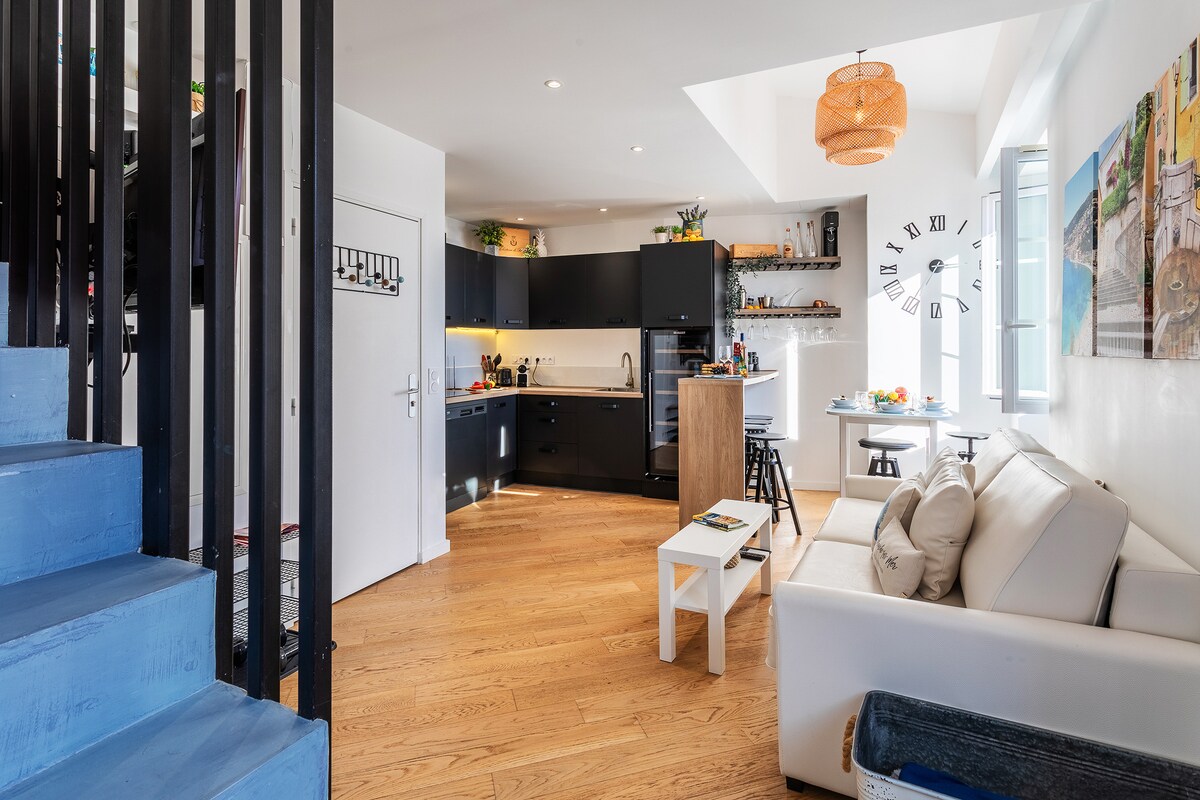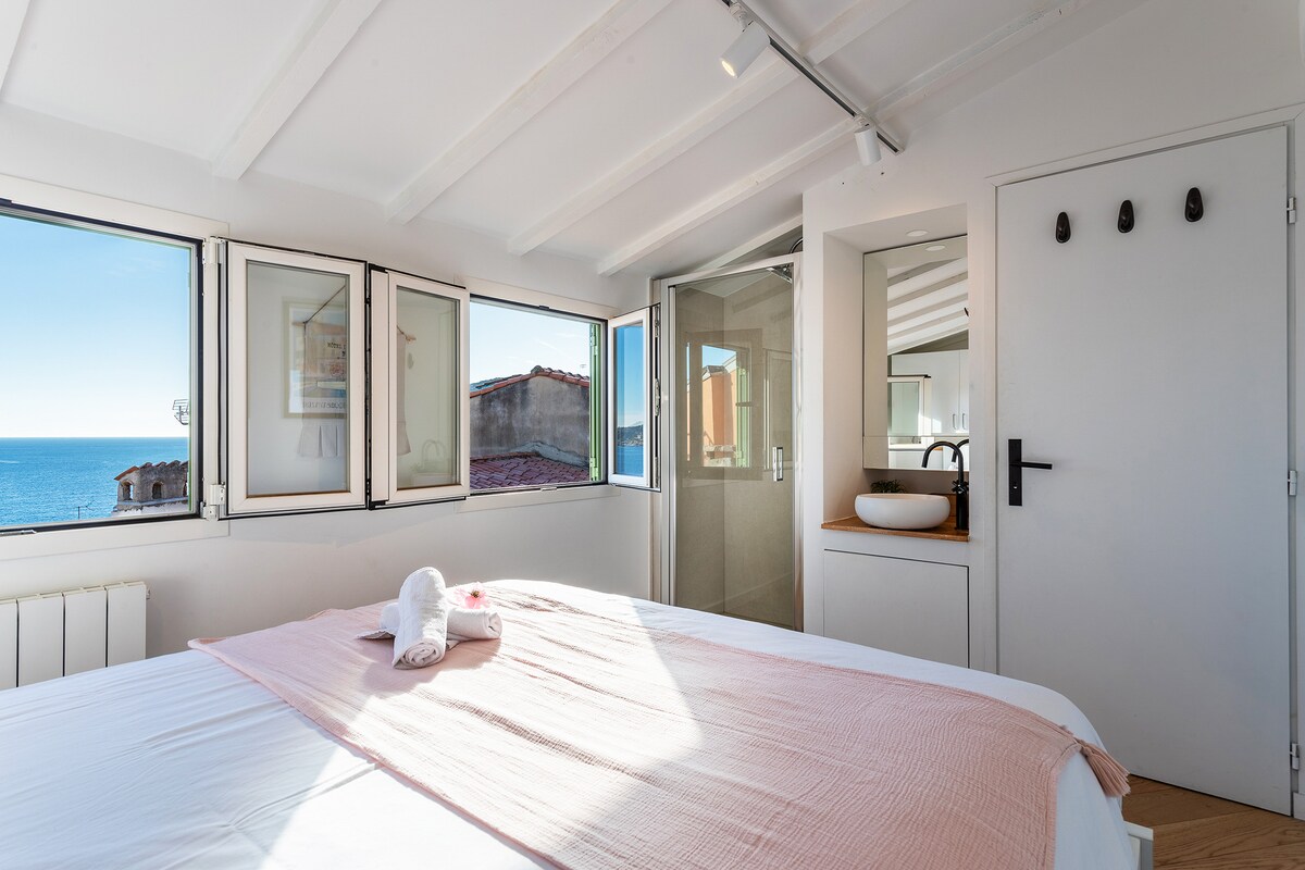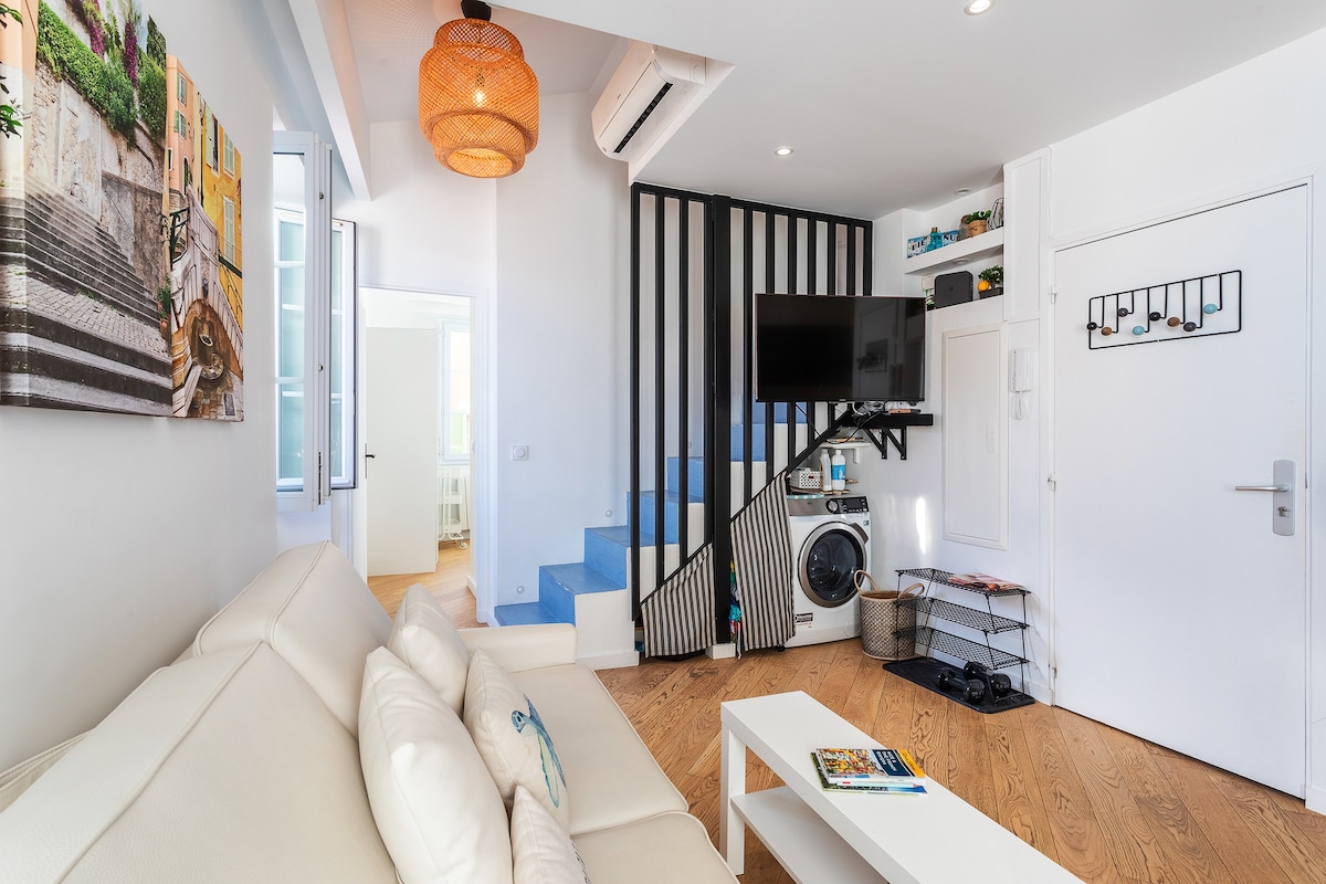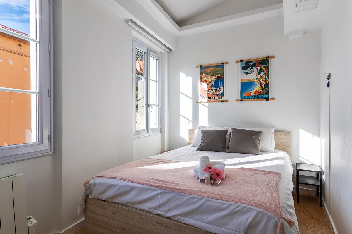 Pearl Ap4444 By Riviera Holiday Homes is a charming duplex located on the top floor of a small residential building in the old town of Villefranche sur mer.Fully renovated, equipped and air-conditioned, it offers a magnificent sea view. It is composed as follows: The living room is equipped with a quality sofa bed, a coffee table, a bar and its 4 stools, a table, a low cabinet with Tv and a WiFi internet connection.