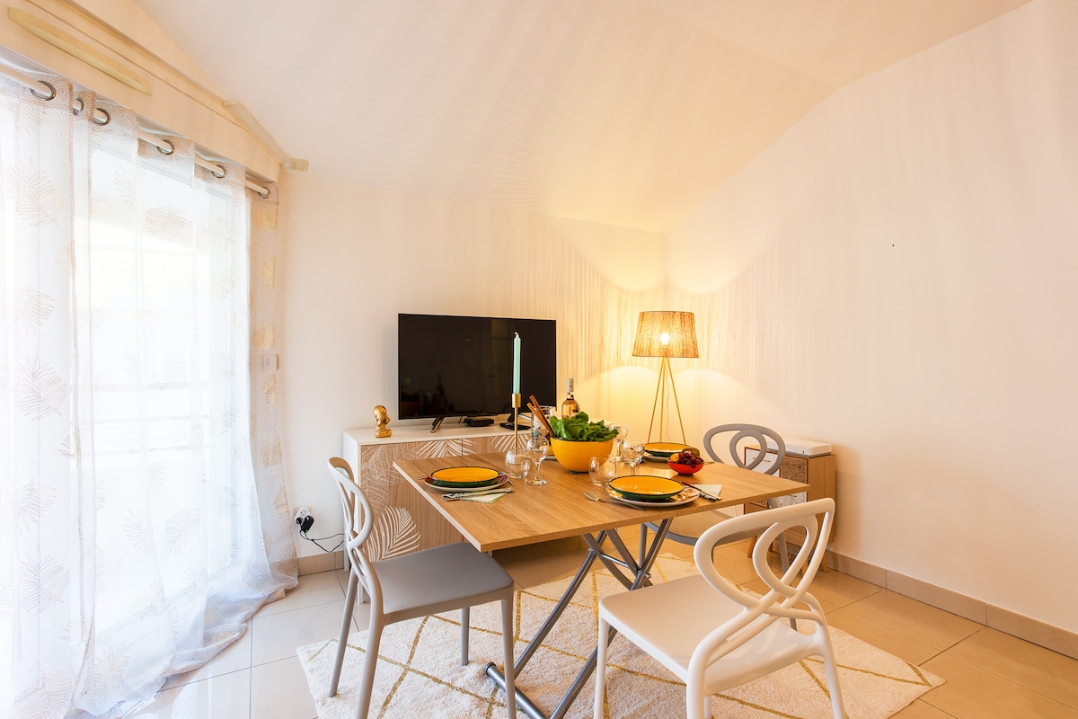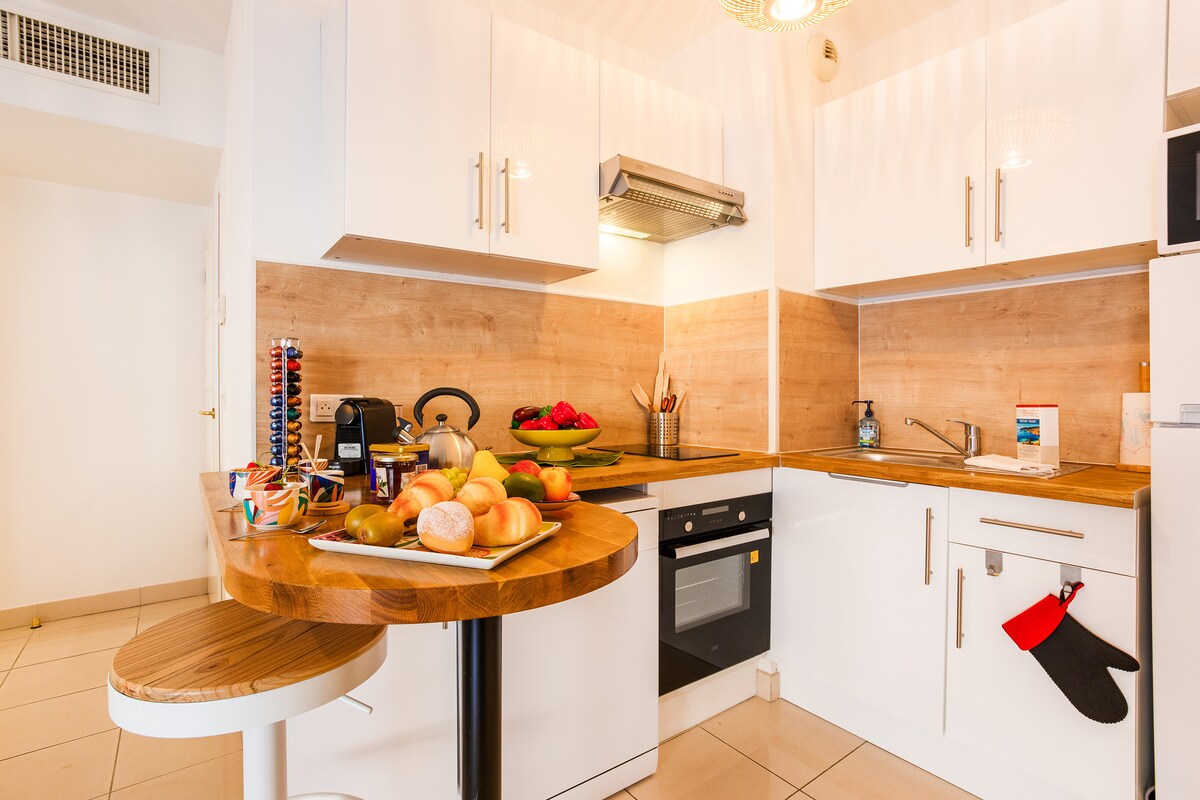 - Equipped terrace with table, chairs and sunbeds, perfect for enjoying the Nice sunshine