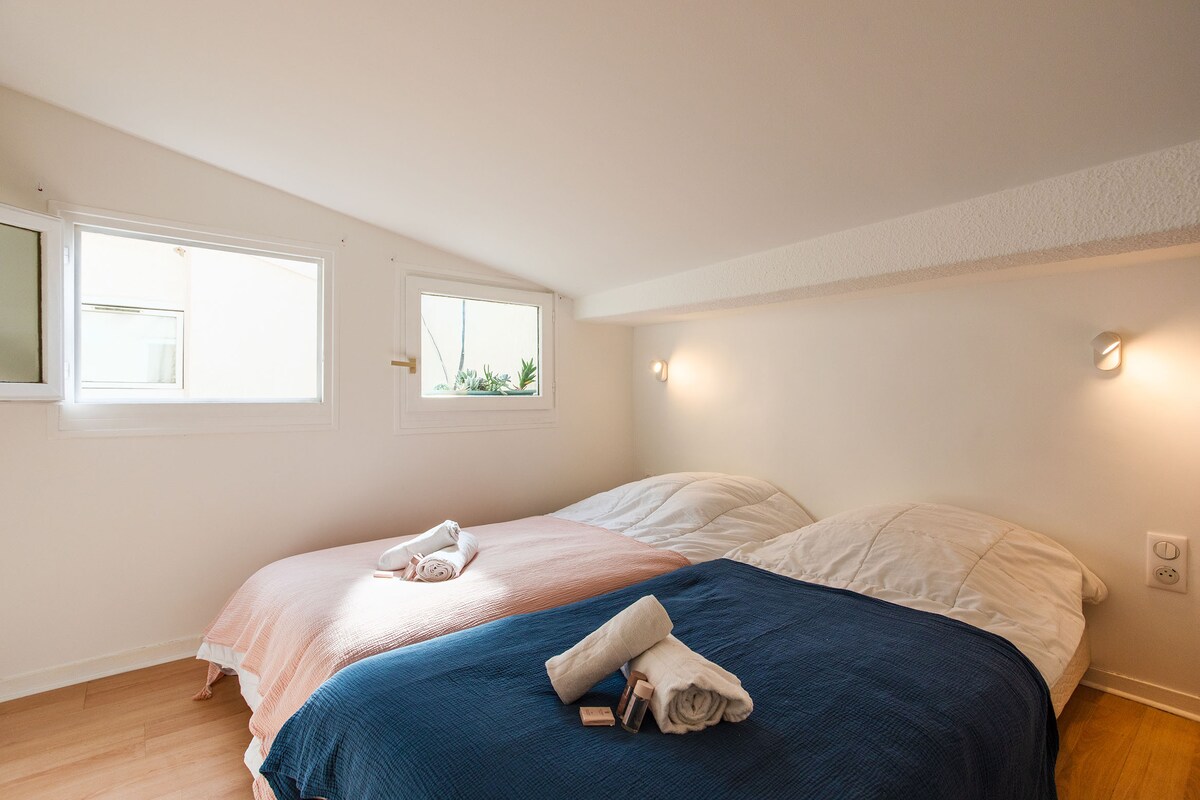 Great and clean spot in old town nice. Very spacious and modern interior with two twin beds connected in the bedroom and two pullouts downstairs. Only issue we had was that the key pickup was located 20 min away from the actual unit which was a hassle having to carry luggage around the city. The stairs to the bedroom were also tiny and the ceiling upstairs was very low. Might be difficult for older or taller folks to go upstairs.