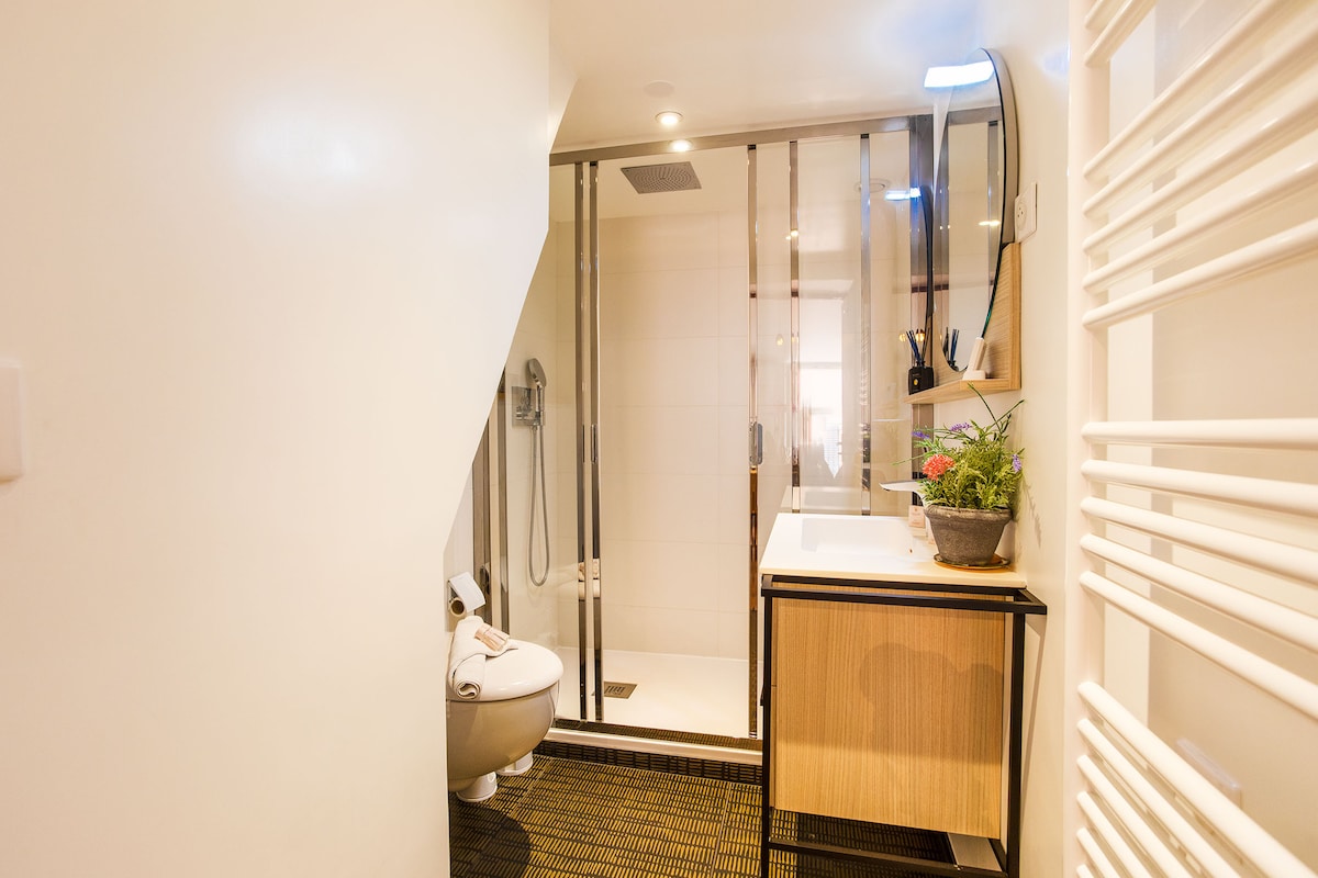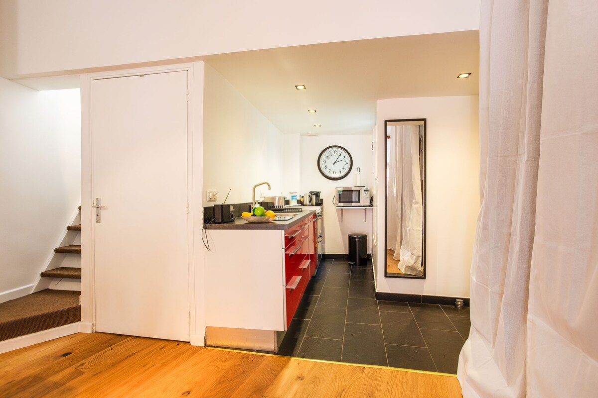Located on the 2nd and top floor of a typical building without a lift, it blends period charm with modern comfort.