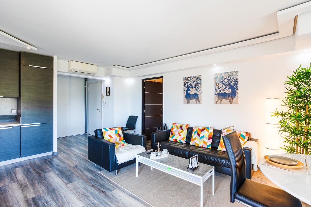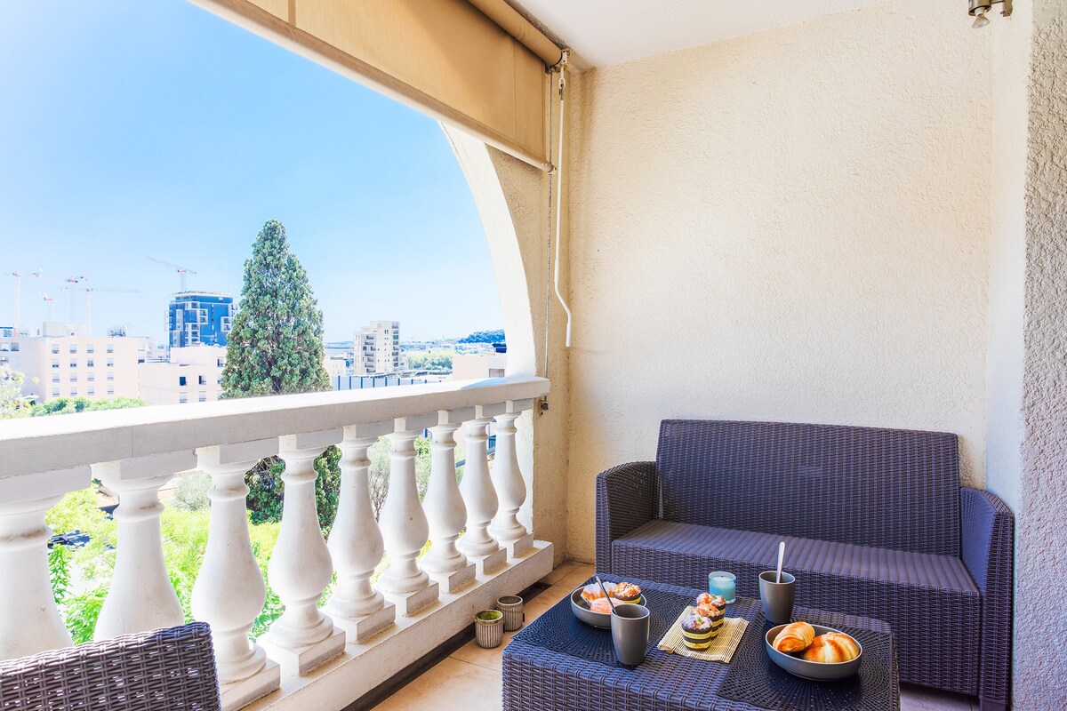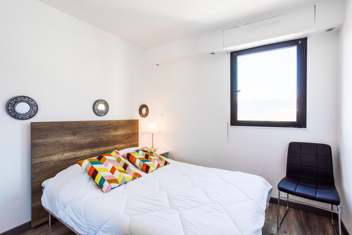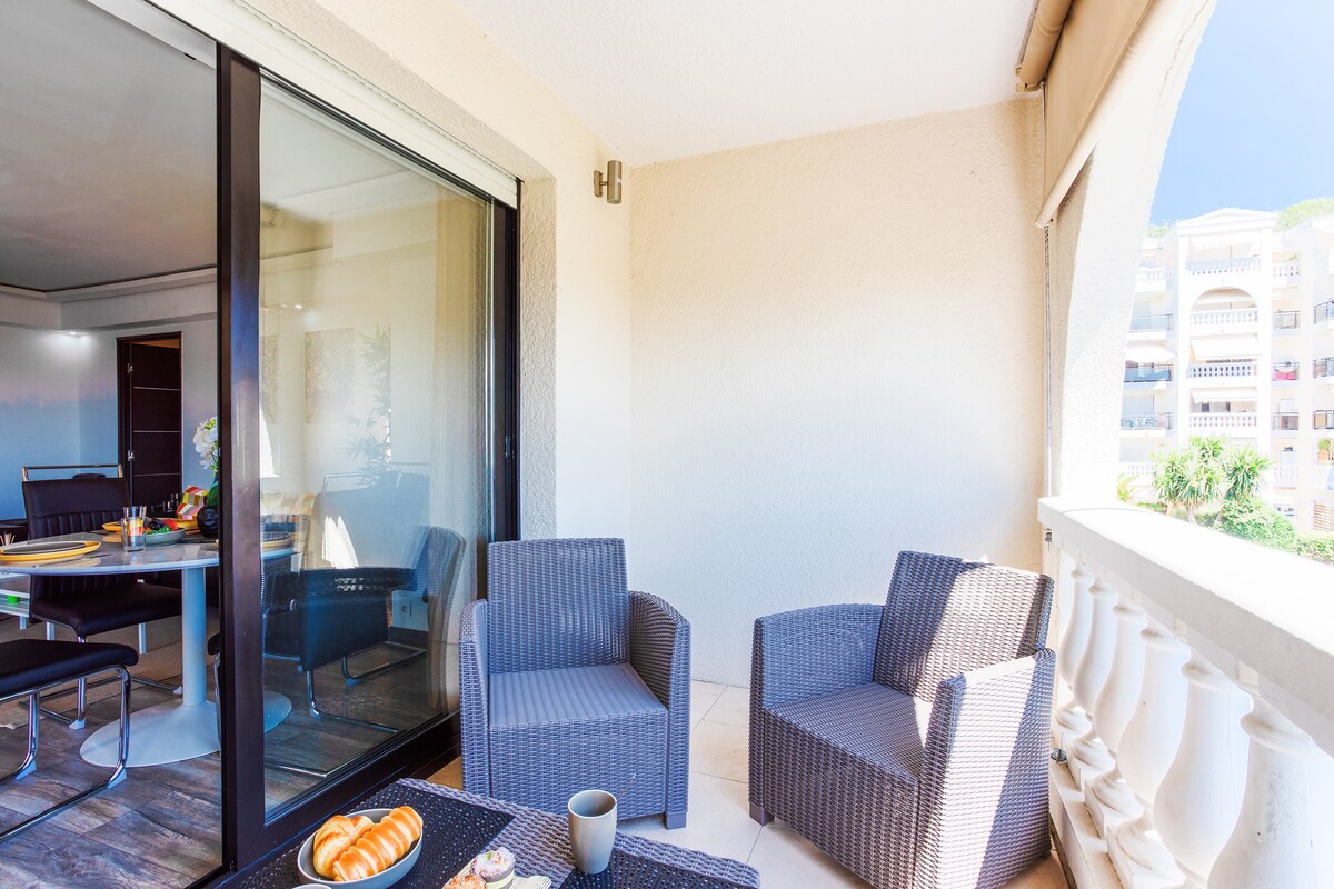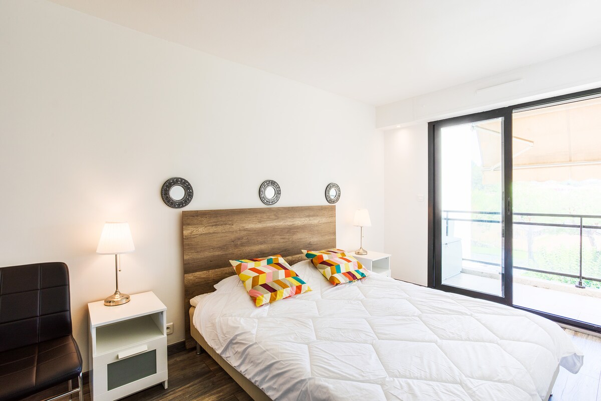 Located in Nice in a beautiful residence with swimming pool, beautiful air-conditioned apartment with open view on the 3rd floor of a building with lift, garage and free wifi.