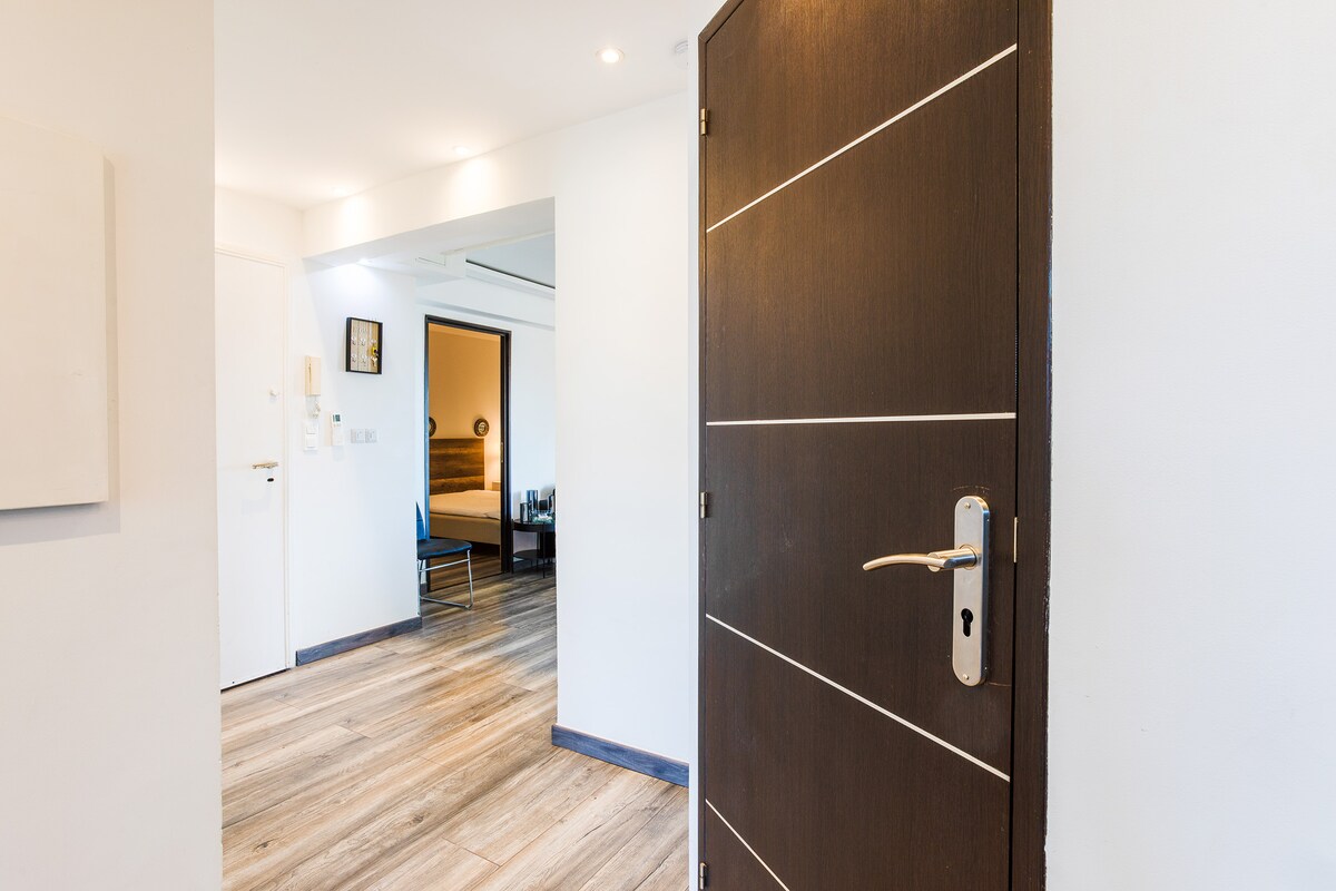 Located in Nice in a beautiful residence with swimming pool, beautiful air-conditioned apartment with open view on the 3rd floor of a building with lift, garage and free wifi.The apartment is composed as follow: