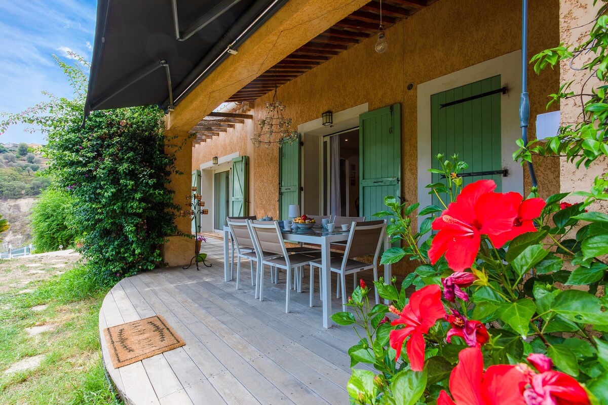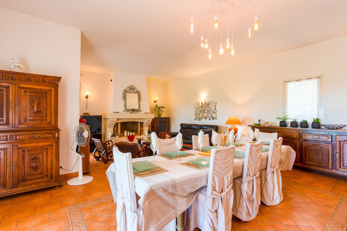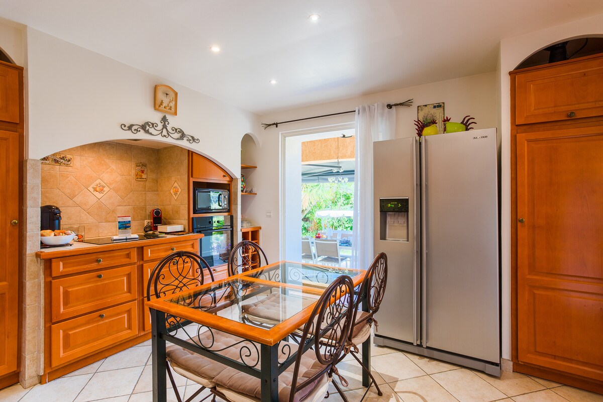 This pretty villa is surrounded by greenery with a terrace and private swimming pool, parking for 3 cars, wifi, an Xxl Bbq for your evenings with family or friends!
