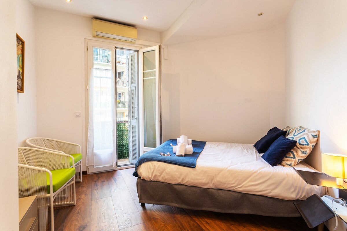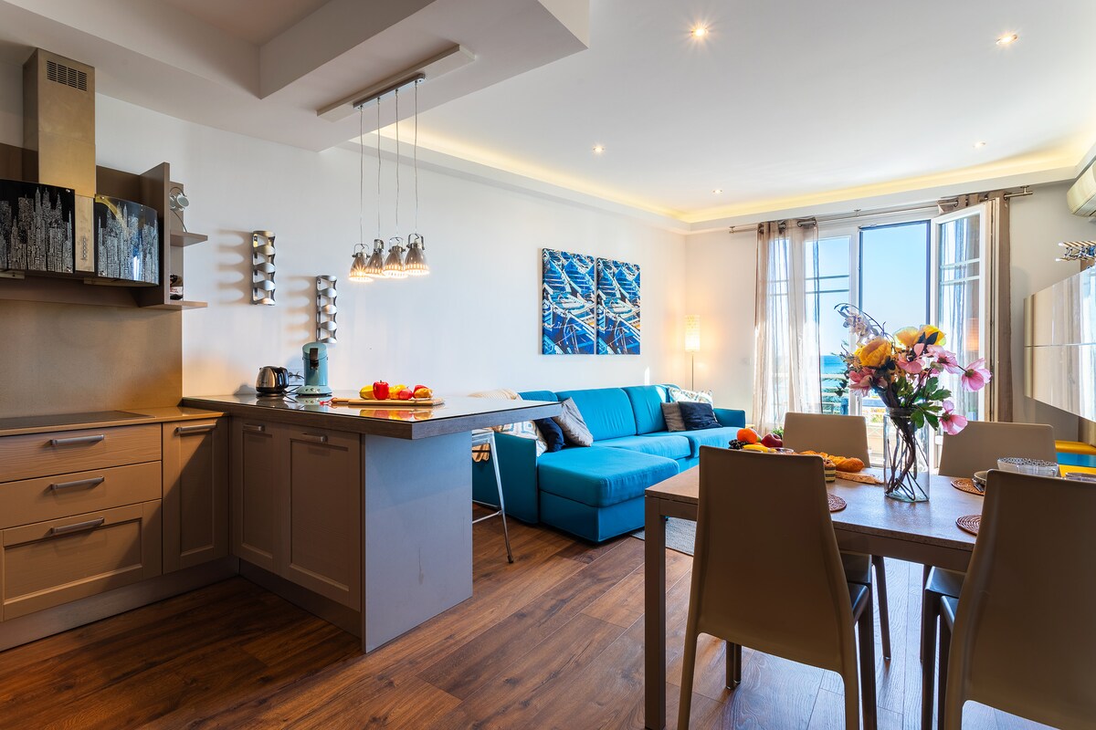The apartment is comfortable and convenient, with its 2 bedrooms, air conditioning, kitchen equipped. The situation on the Promenade des Anglais ensures an incredible sea view. Located near electric charging stations, a direct tram stop to the center, bakeries and other shops. Excellent communication with the manager, efficient and responsive. Successful stay.
