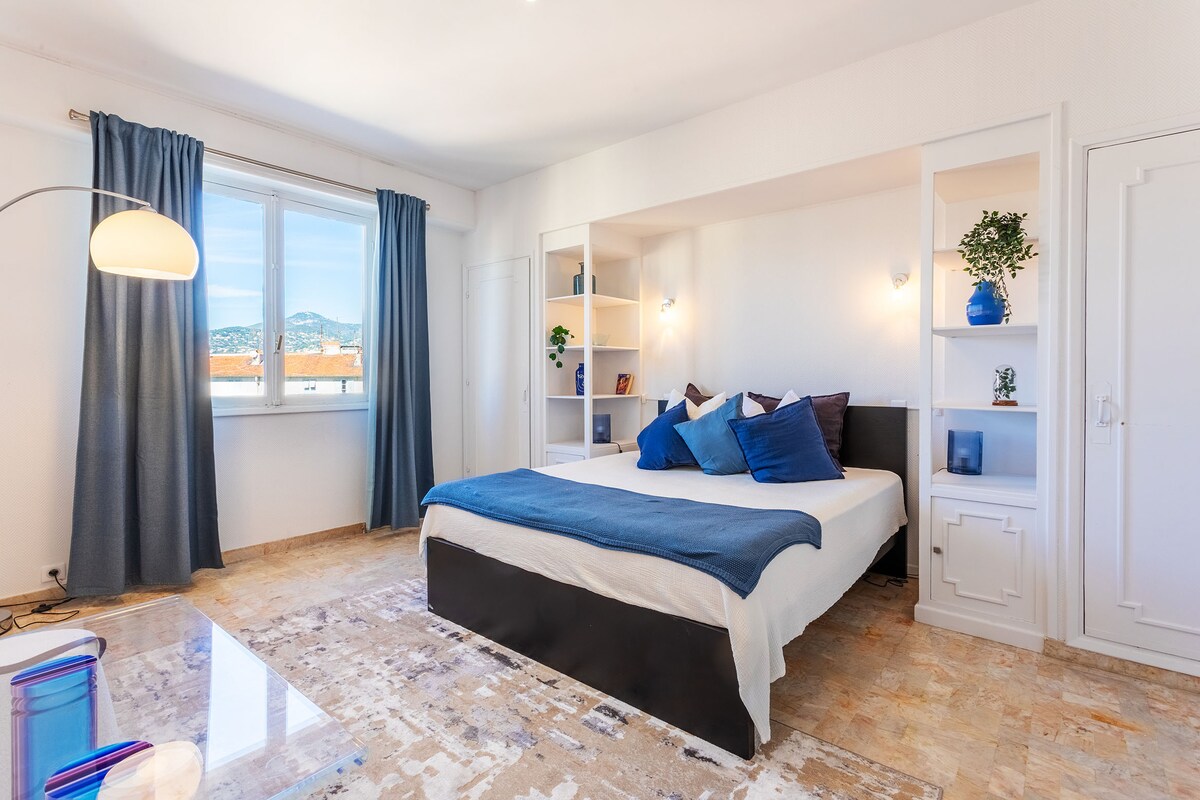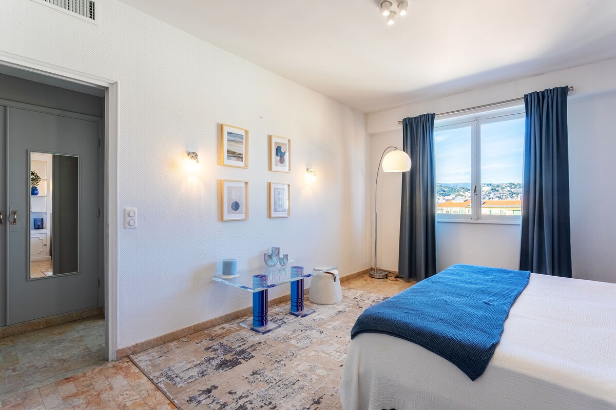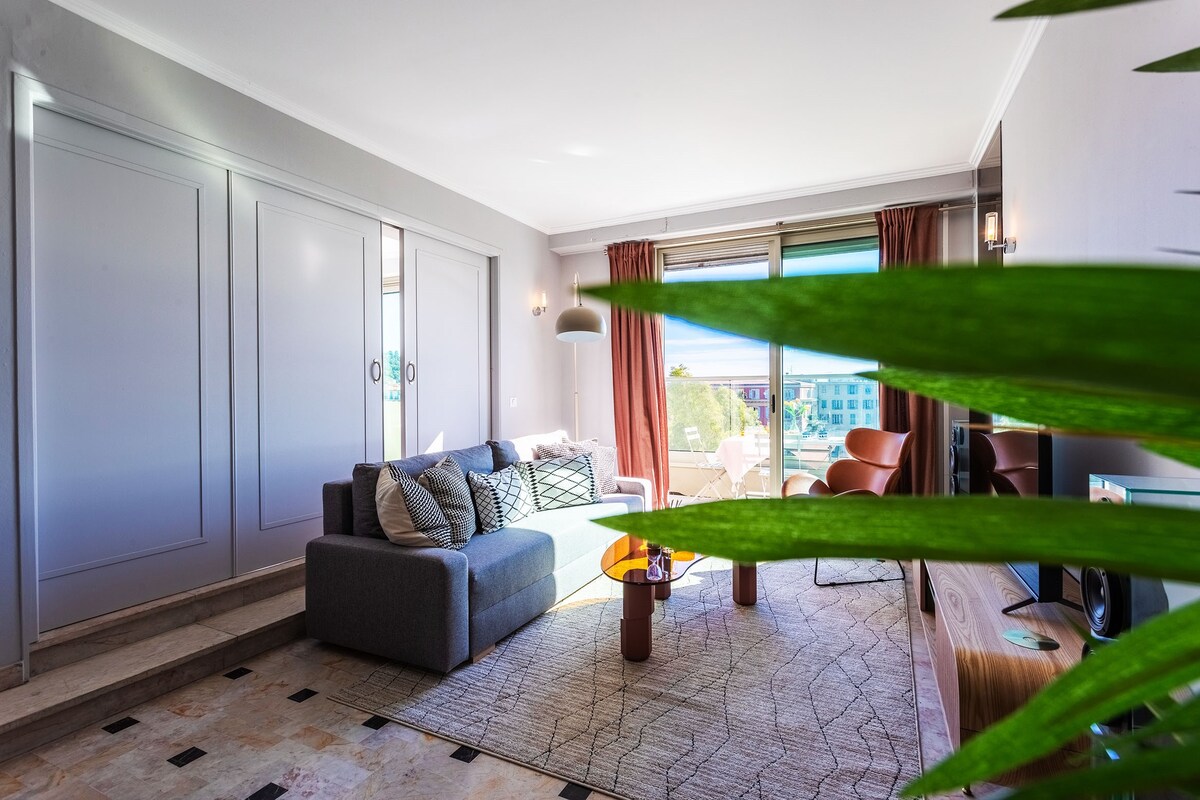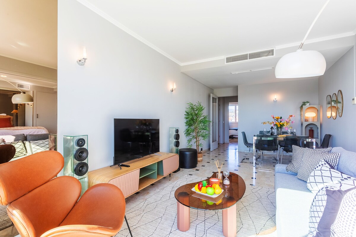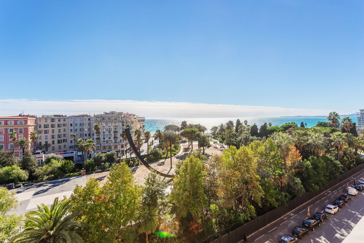 - a bright living room opening onto a terrace with panoramic view of the Promenade des Anglais and the sea,