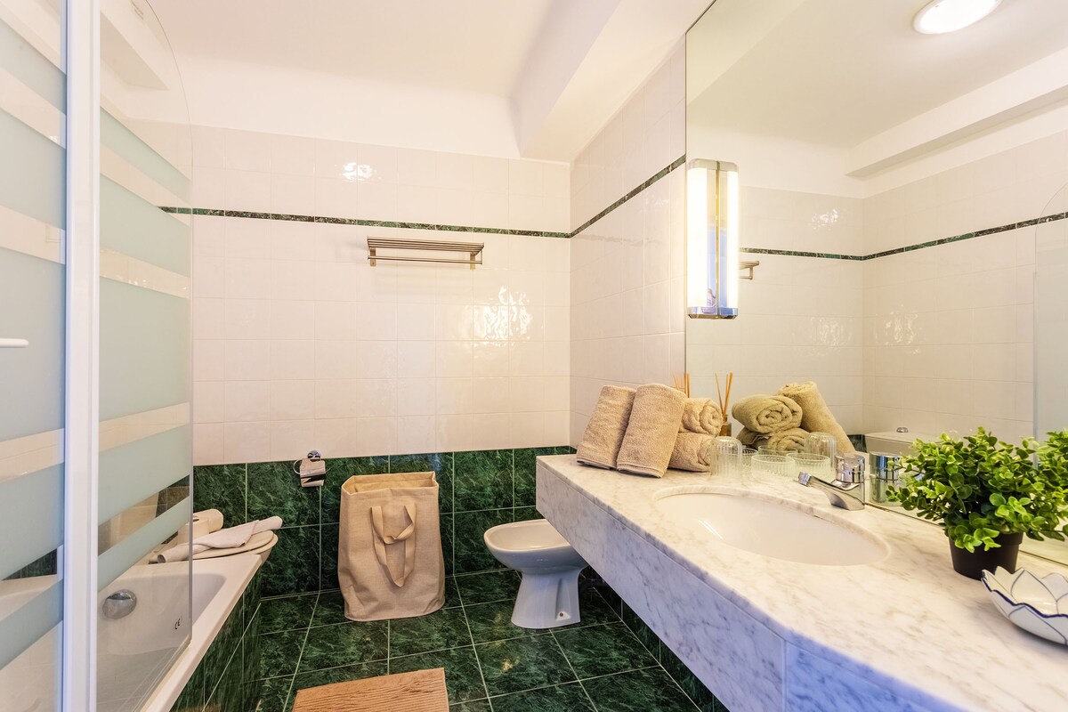 - 2 bathrooms: 1 with shower, bathtub and 1 toilet and the other with bathtub and 1 toilet