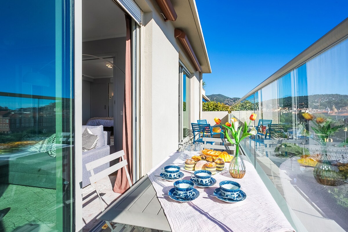 We were absolutely blown away with this apartment. It is literally a “secret apartment” in a 5-star hotel. The view from the outdoor deck/patio is breathtaking. The location absolutely cannot be surpassed - near the beach, Old Nice and walkable to everything! Each morning was a walk to pick up different pastries from nearby bakeries. The apartment itself is very large and easily accommodated 5 adults. Nice itself is also an amazing place to visit with easy public transportation (train) to Monte Carlo, Menton and Cannes. The visit to Nice is one of the best trips we’ve made and this apartment added to the enjoyment. I would highly recommend this location to anyone visiting Nice.