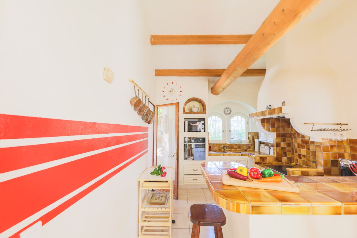 Located in Tourrette-Levens, La Rohiere is a large 230 square metre holiday rental villa. It has a beautiful terrace with a dining area, a Bbq and a swimming pool. It is equipped to accommodate 8 people.On the inside, it consists of a fully equipped kitchen, a large living/dining room, 4 bedrooms including 3 bedrooms with 1 Queen size bed (160 cm) each and the other with 2 single beds as well as three bathrooms, 1 with a shower and the other 2 with a bath and shower, 3 toilets and an office.