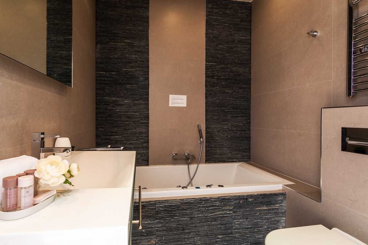 Apartment is in city center and was great for our group of 6 adults. Charming, clean, well situated. Air conditioning throughout the house. It looked exactly like the photos. The host was very responsive and gave clear instructions on where to go for check-in (go to the property management office around the corner) and instructions to access the apartment. We had a few maintenance items on the first day and they were resolved the same day. The main downside of the unit are the bathrooms. In the primary bedroom there is a bathtub with handheld shower (tub does not work, but you can use the handheld nozzle to shower), toilet, and sink. In the common space there is split bath--a separate room with toilet and sink. And, another room with shower and sink. The split bath setup works well for a large group because you can better juggle shower schedules, but many travelers may be unaccustomed to showering with a handheld nozzle so it may seem like you only have 1 shower.