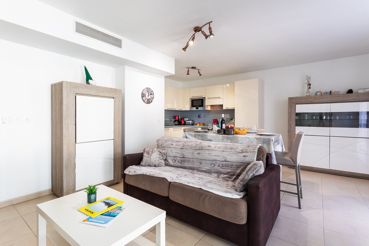 Masséna Garden is a beautiful modern 65 m² apartment, fully equipped, located in a recent residence built in 2016, in the heart of Nice.