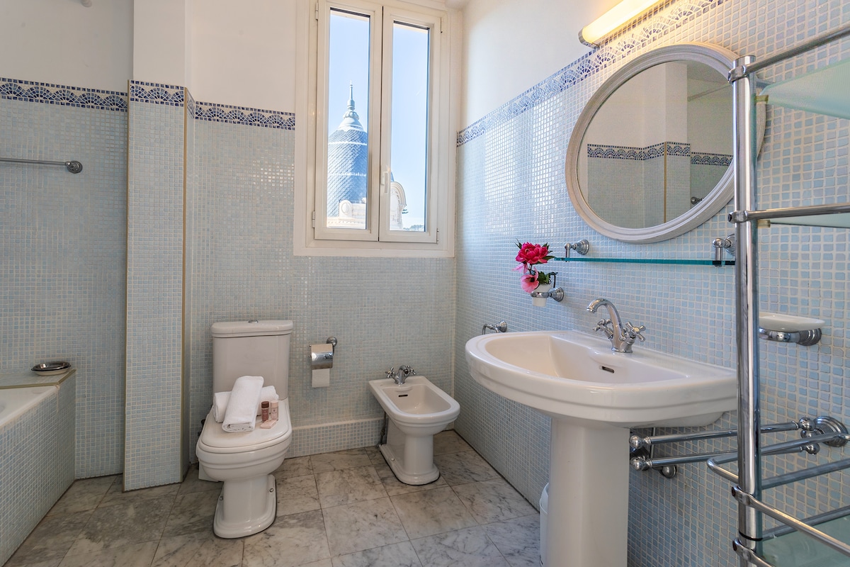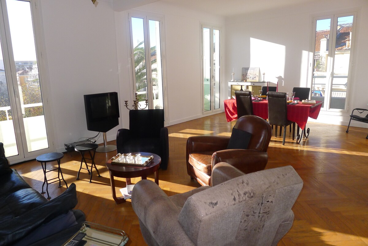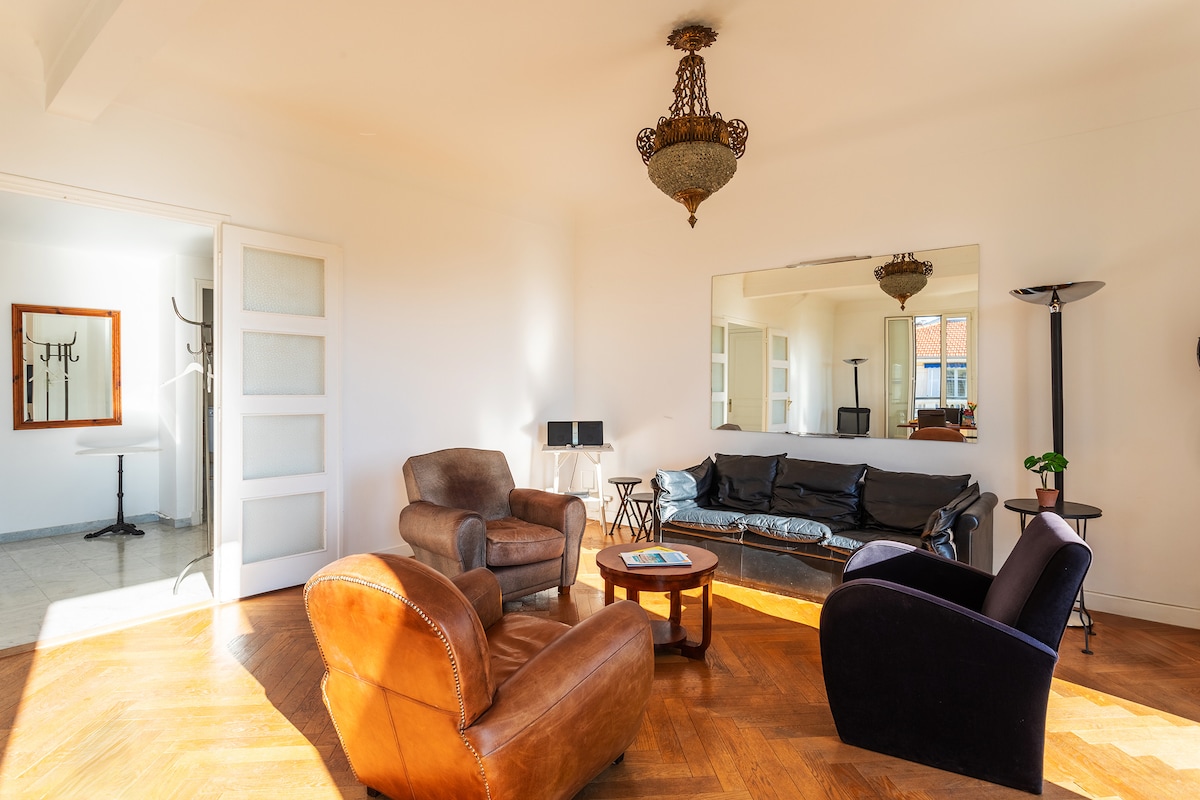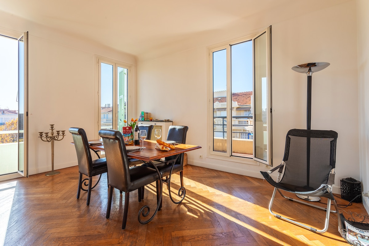 This charming 115m2 holiday rental apartment located in Nice is equipped to accommodate 4 people.It consists of a fully equipped independent kitchen, a spacious living/dining room, two bedrooms with 140cm double beds, two bathrooms, one with a bathtub and 1 toilet, the other with a shower and a separate toilet.