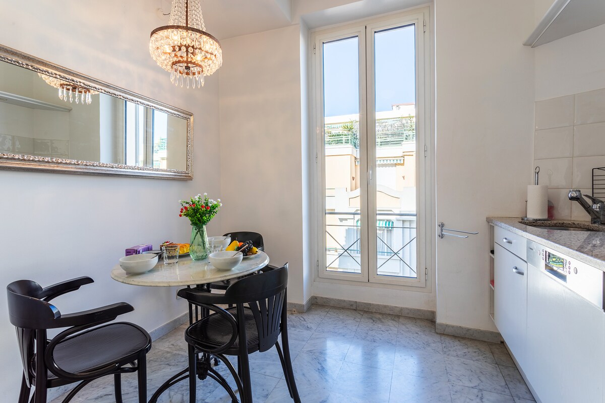 Located 200 metres from the Beach, the famous Negresco Hotel and the Promenade des Anglais, this seasonal rental is on the 4th floor with a lift, in a prestigious building. It has a beautiful open view of the courtyard.