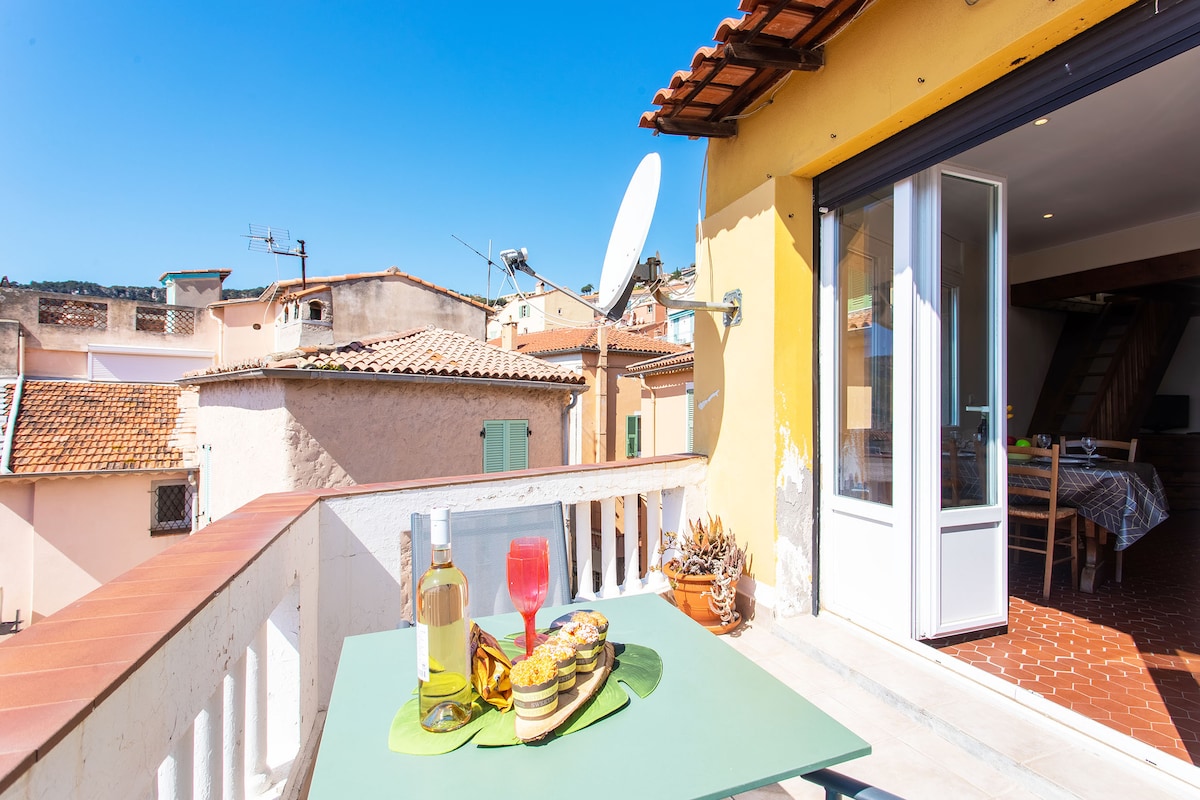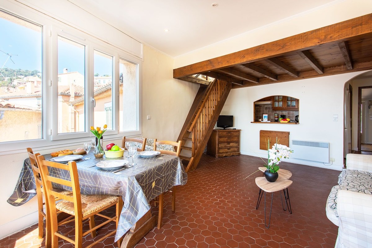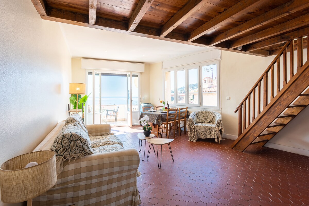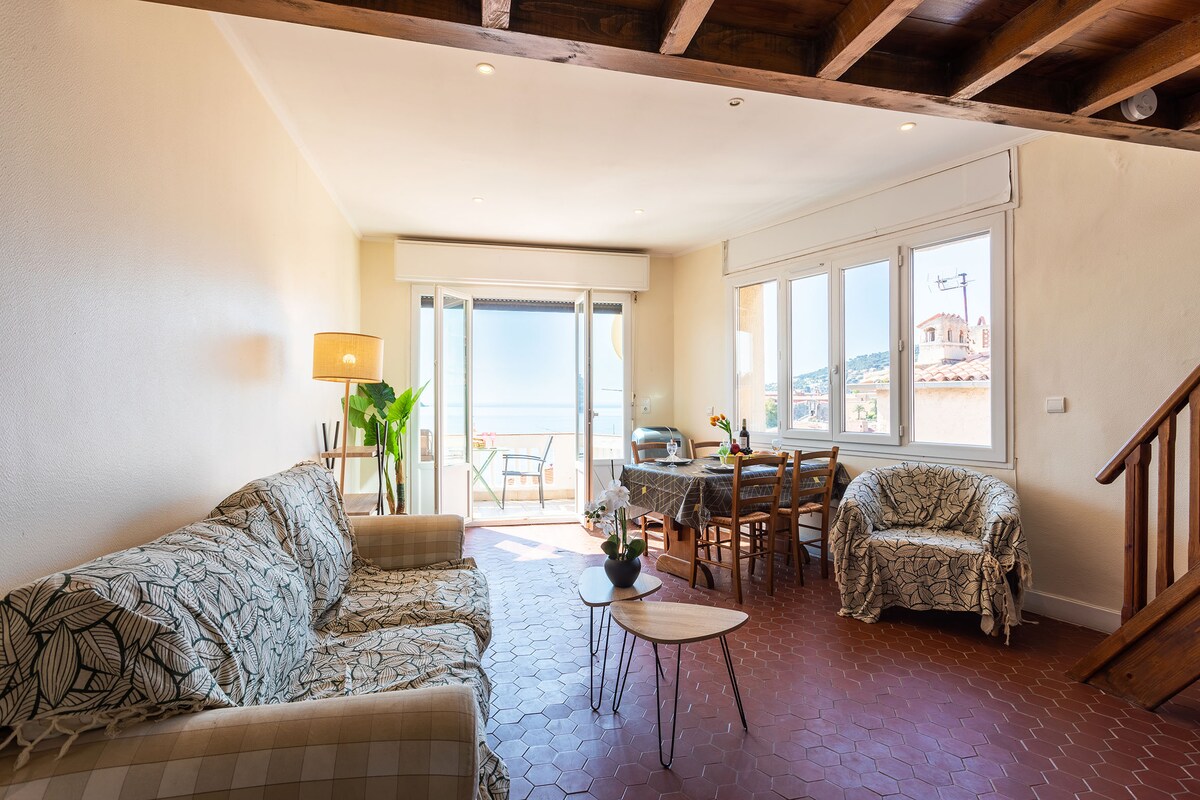 Located in Villefranche-sur-Mer in the old town, Le Belvedere is a 46 m² holiday rental apartment equipped to accommodate 3/4 people.It consists of a small equipped kitchen, a sleeping area on the 1st floor with 1 double bed (140 cm), a living room with a dining area and a sofa bed for 2 people, a bathroom with shower and toilet.