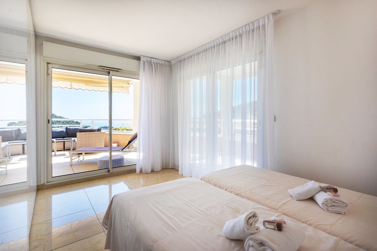 Located on the heights of Eze, Eze Vista is a superb 105 square metre holiday rental apartment with a pool and garage. It is fully air-conditioned with a beautiful panoramic view of the sea and the village of Eze.