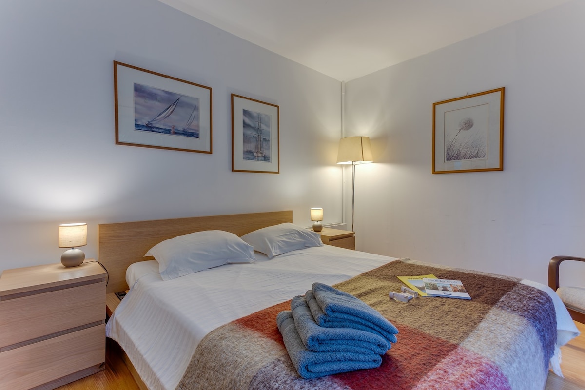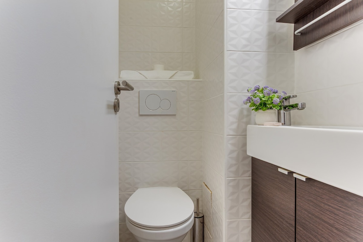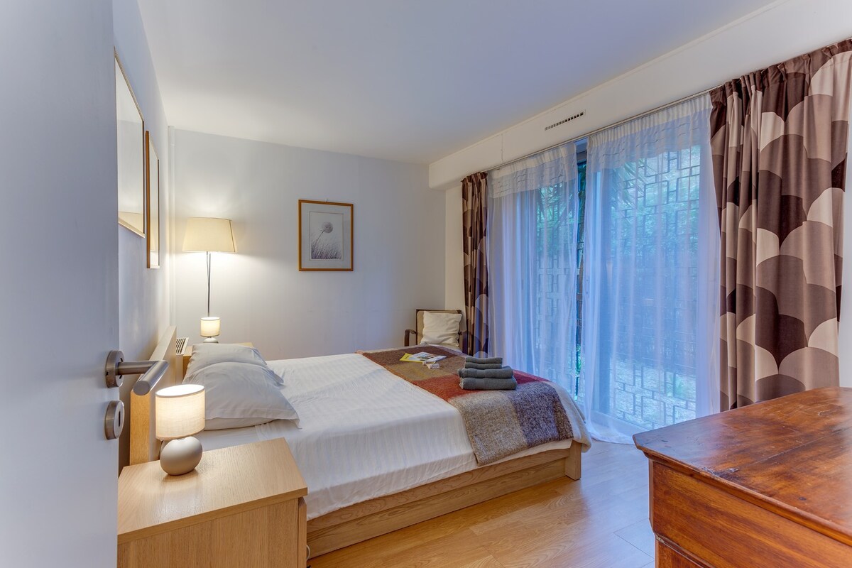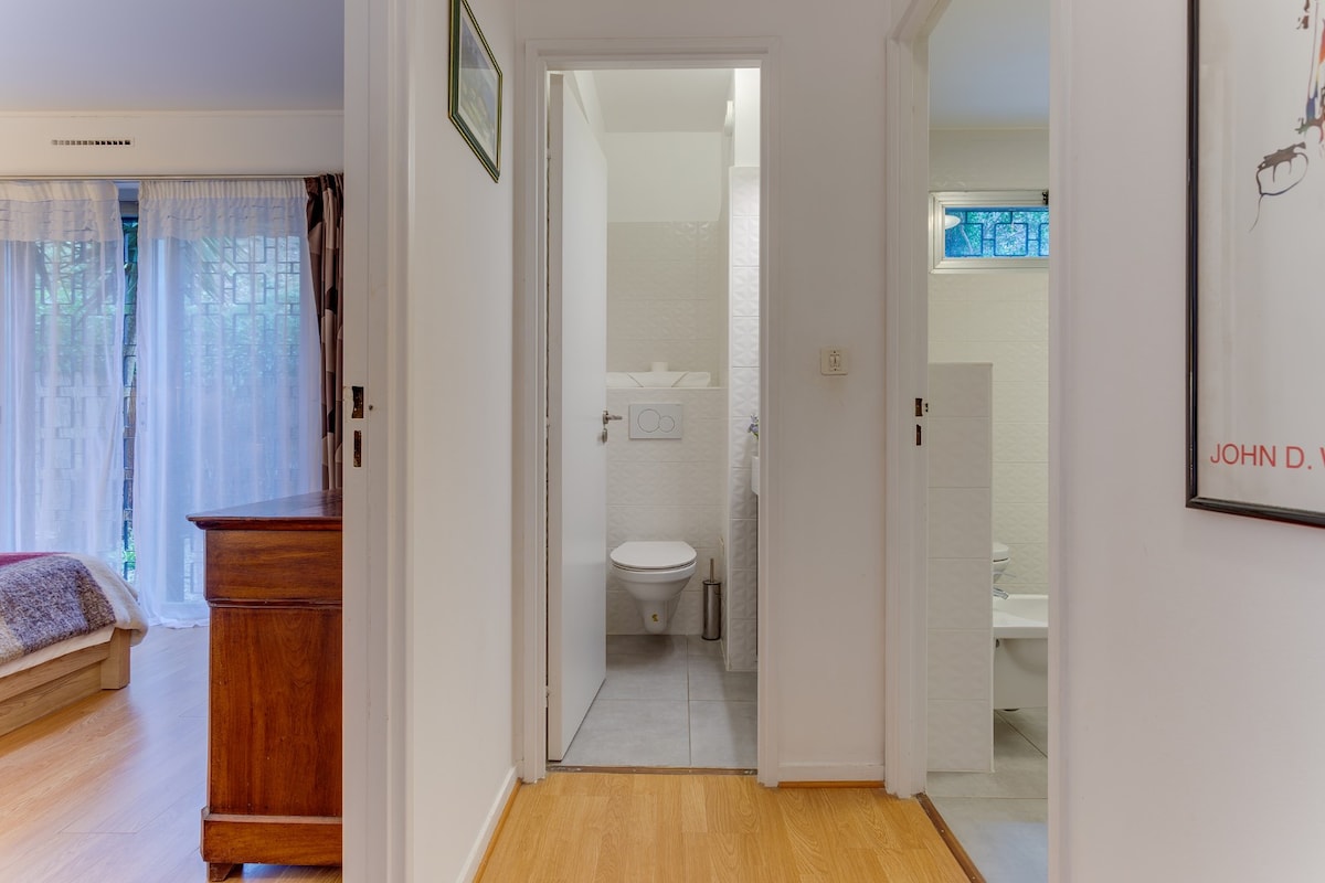 Nice and clean apartment with private patio. Lovely view from a green little garden. This apartment is probably delightful in the summer, with cooling floors in marble. We missed some rugs on the floors, and warmer blankets in all the beds this fall. Some basic goods in the cabinets( salt,pepper, sugar, etc.) could and was good. Otherwise central location, comfortable beds and good dining area around the tables.
