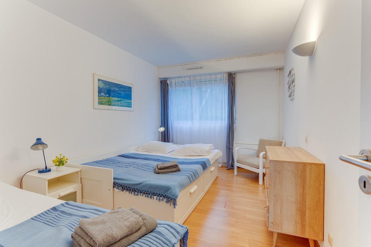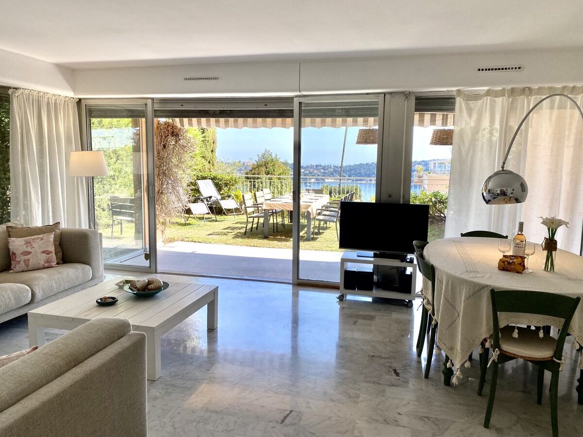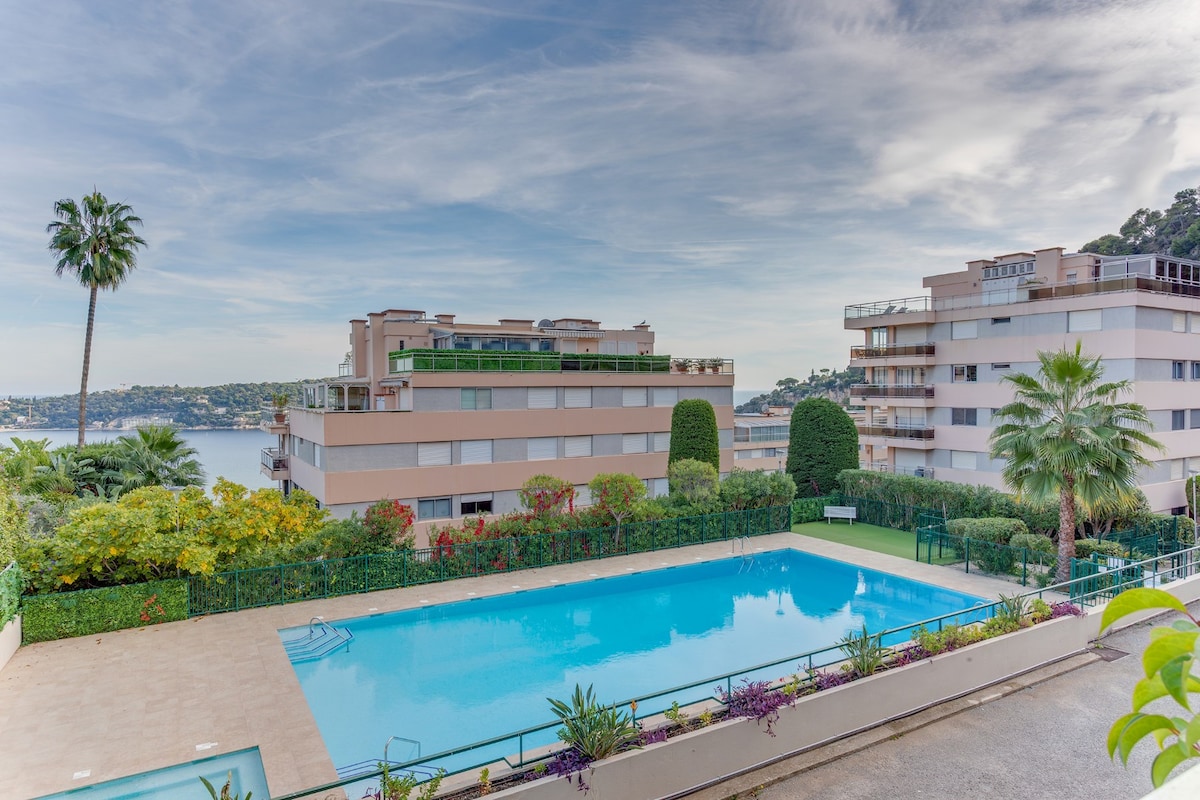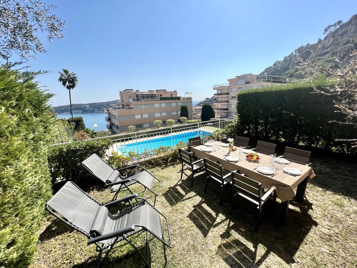 My friends and I stayed at the apartment for 1 week and enjoyed it immensely. The garden/patio area overlooks the shared complex pool which were both great amenities. It is about a 15 minute walk down (very downhill) to Villefranche beach and is very accessible for the bus to Nice. We found the place to be clean and have a well-equipped kitchen. Would recommend!