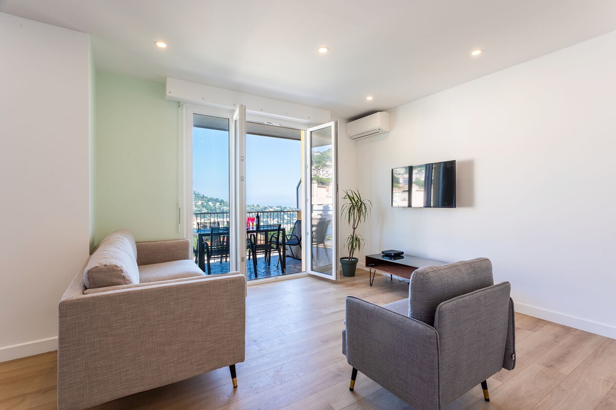 Le Mont Alban is a seasonal rental apartment that has been completely renovated. It is located in Villefranche S/Mer on the ground floor of a small residence. It has air conditioning and a parking space. Thanks to its area of 65 square meters, it can accommodate 4 people.From the terrace you will have a magnificent view of the Bay of Villefranche-sur-Mer!