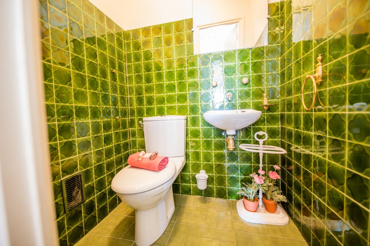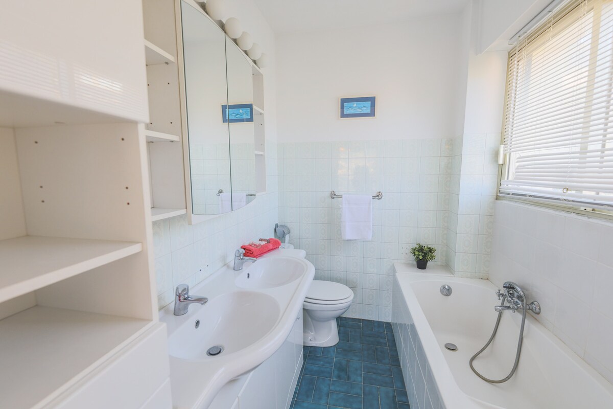 On the inside, it consists of a separate fully equipped kitchen, a living/dining room with 1 double sofa bed, 2 bedrooms with 1 double bed (140 cm) each, 2 bathrooms, one with a bathtub and toilet and the other with a shower and toilet, and a separate toilet.
